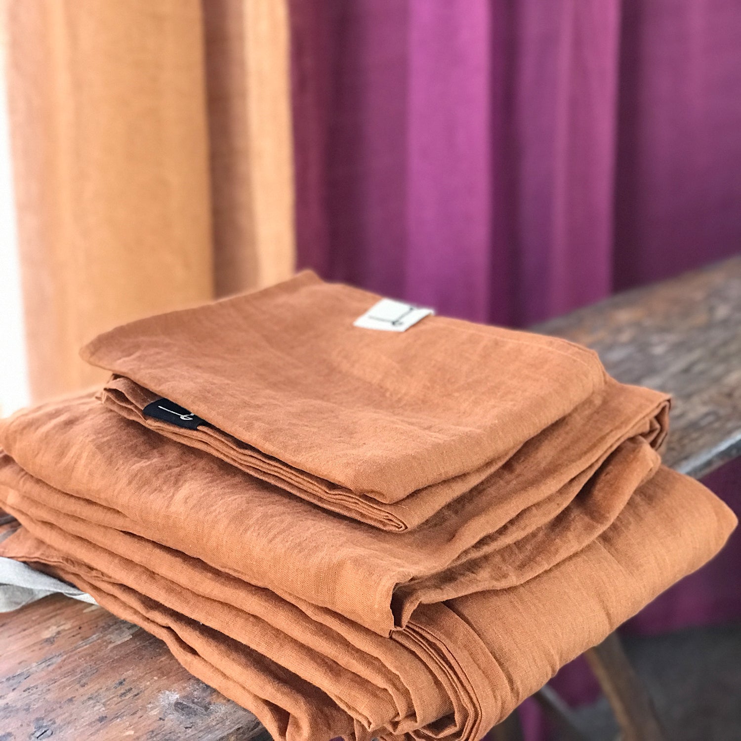 Ves haciendo tu juego de cama poco a poco, combiando colores del mismo lino.
