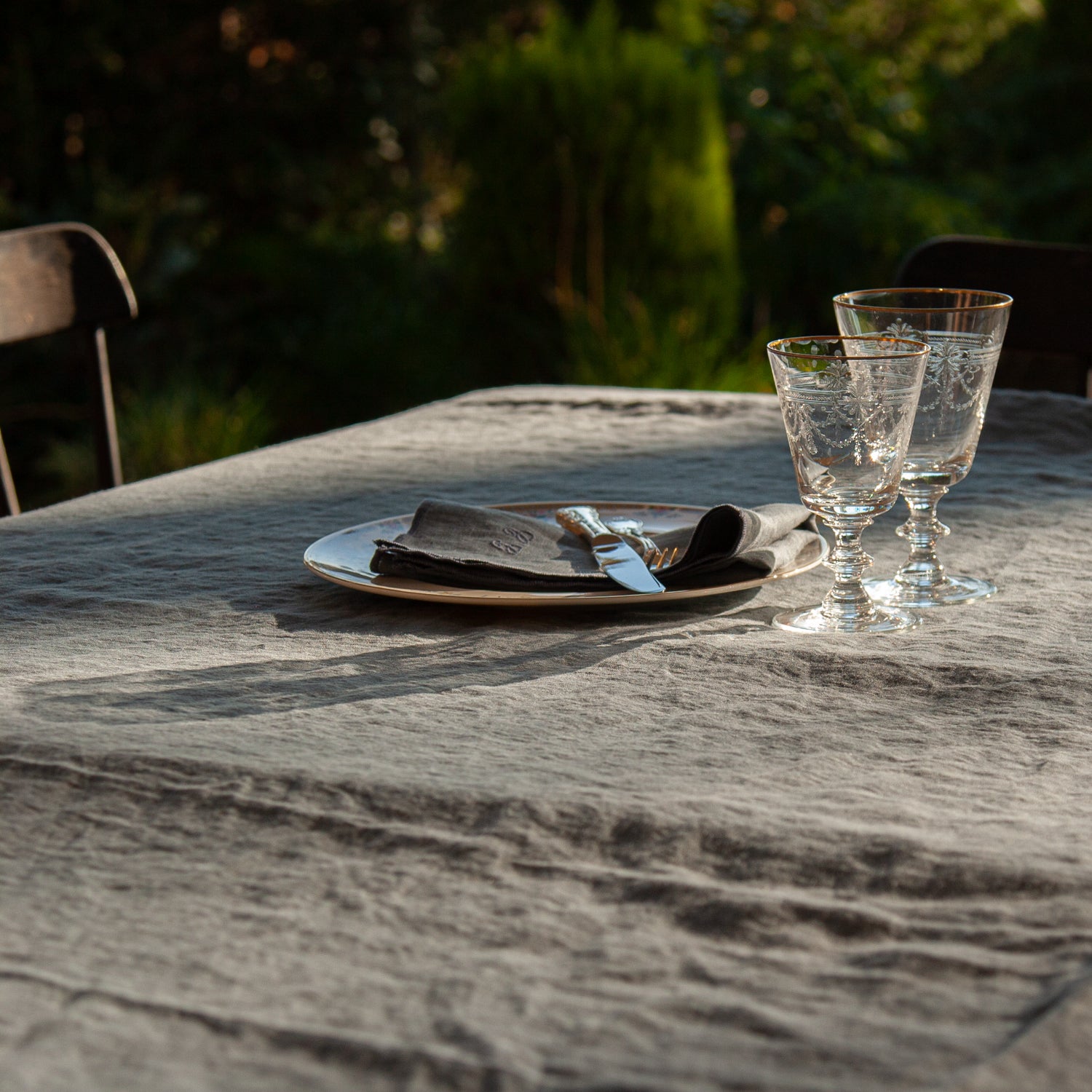 200gr/m2 washed linen tablecloth in a soft grayish blue color that changes with the intensity of light. In sizes over 250cmx250cm they have an embroidered union. They are very handmade and are unique pieces. Add the muletón that protects your table and gives body and flight to the tablecloth. All tablecloths are made to order; if it is not your size write us an email and we will send you a quote.
