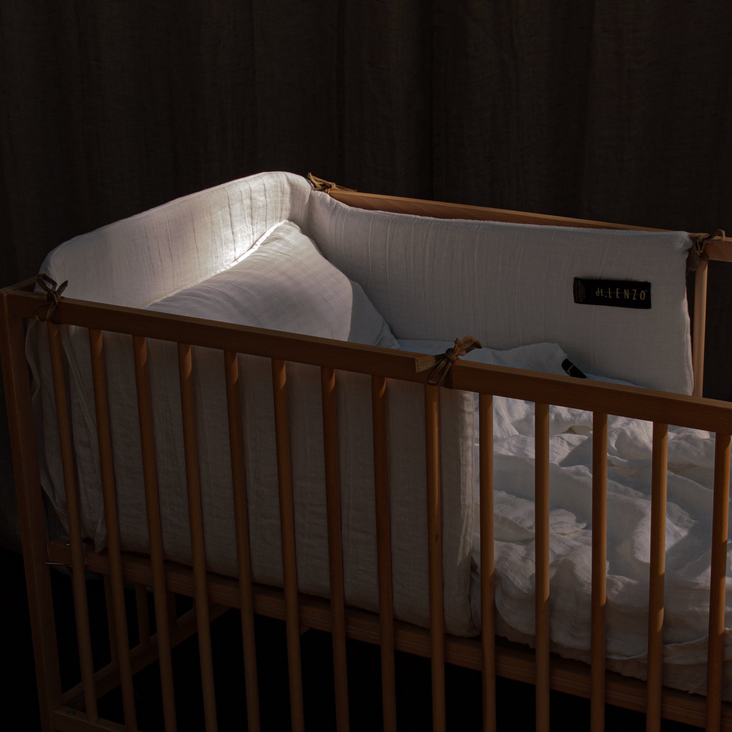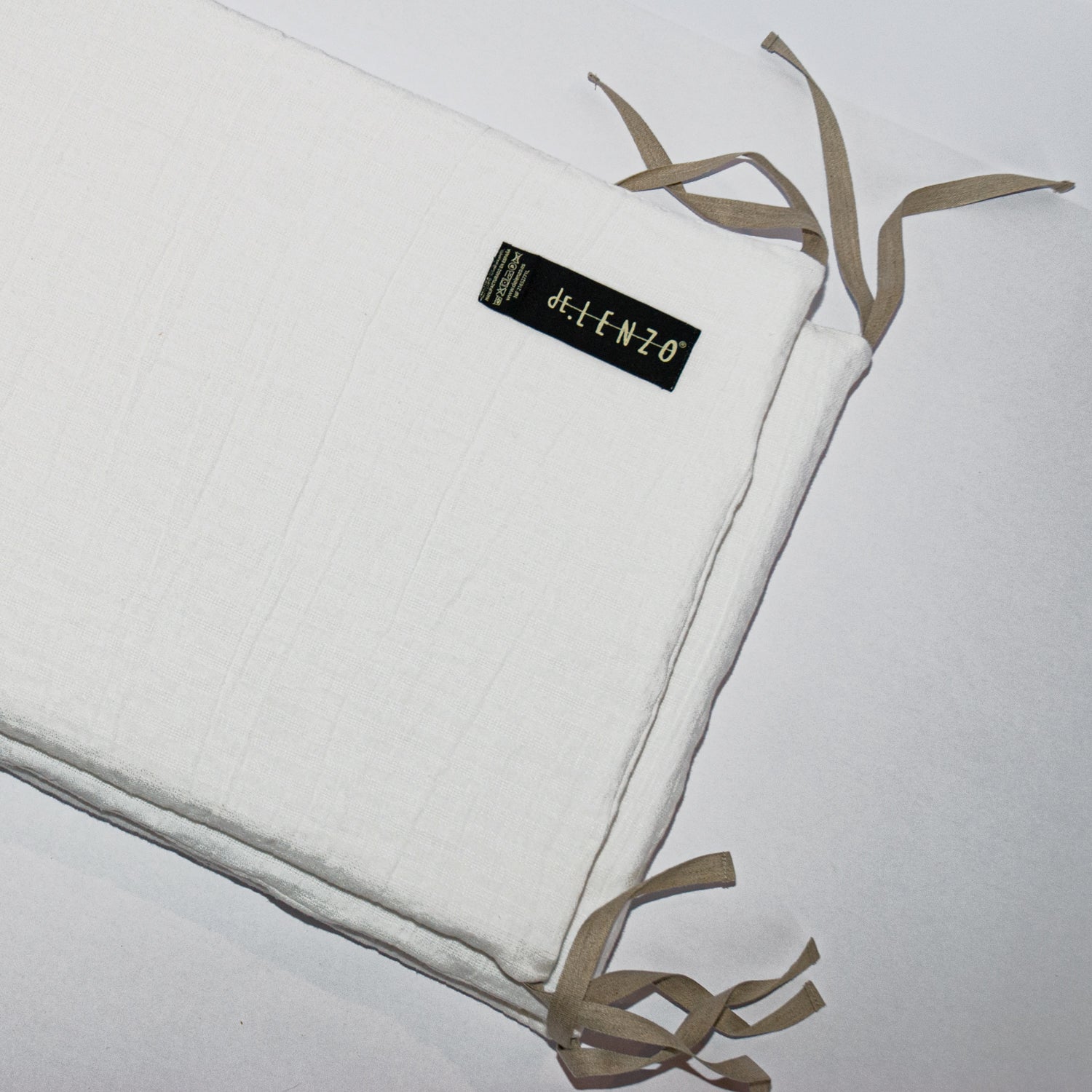 Esta chichonera o protector de cuna es ideal para que el bebé no meta sus manos o pies entre los barrotes y se pueda hacer daño, además al ser de lino es suave y super acolchado. Un detalle importante es que el protector es desenfundable. Es apto para lavadora, secadora y no necesita plancha.