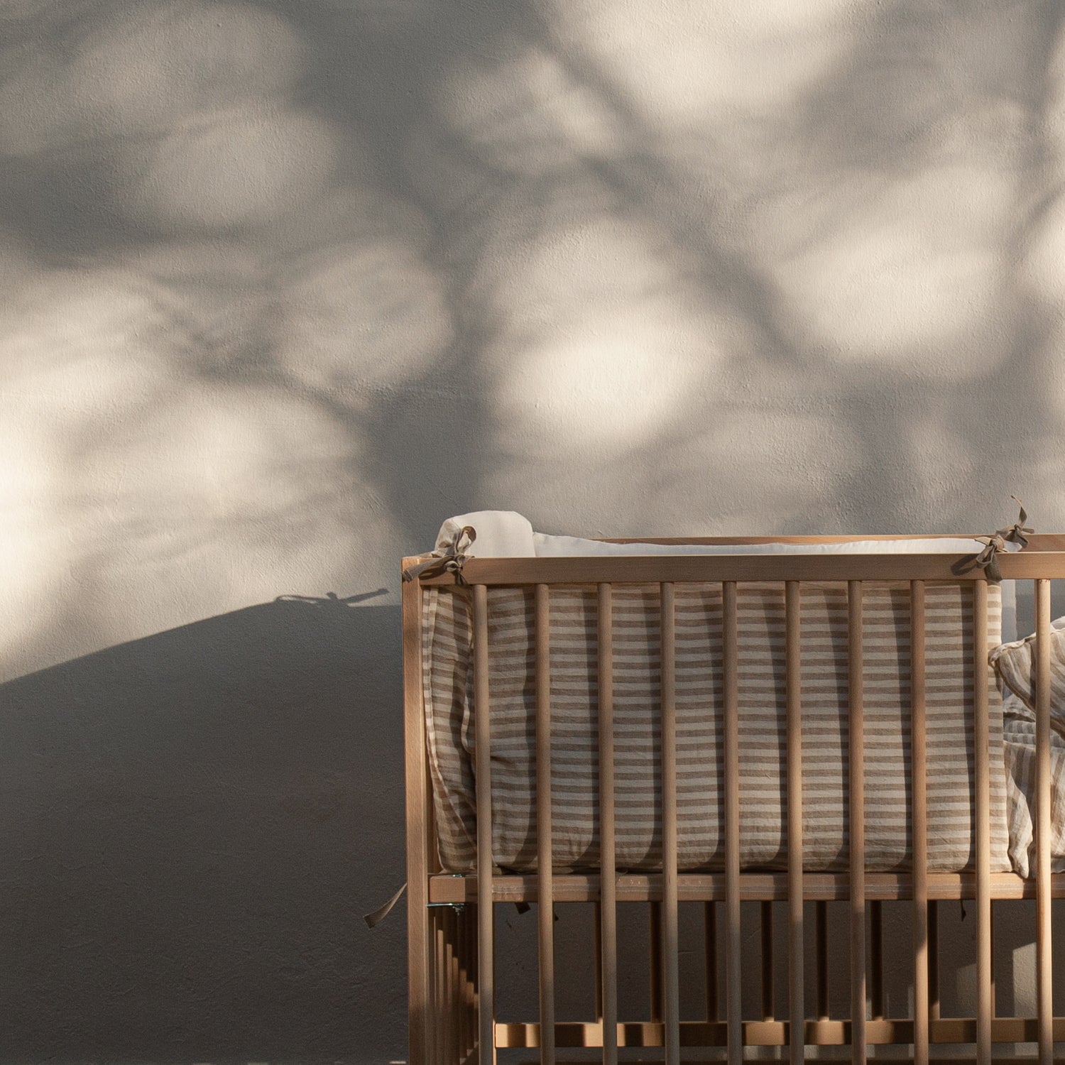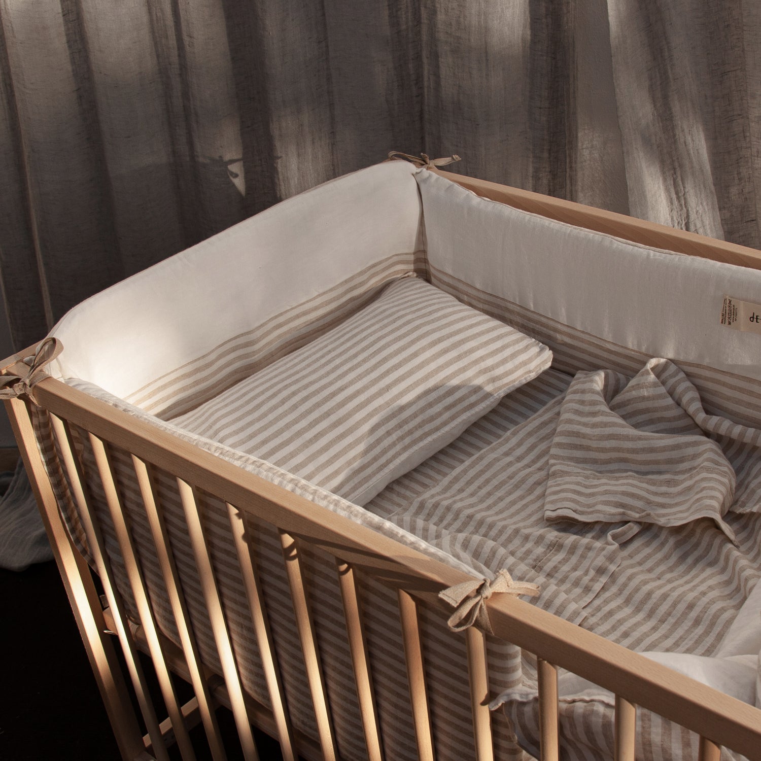 La chichonera o protector de cuna Colette es ideal para que el bebé no meta sus manos o pies entre los barrotes y se pueda hacer daño, además al ser de lino es suave y super acolchado. Un detalle importante es que el protector es desenfundable. Es apto para lavadora, secadora y no necesita plancha.