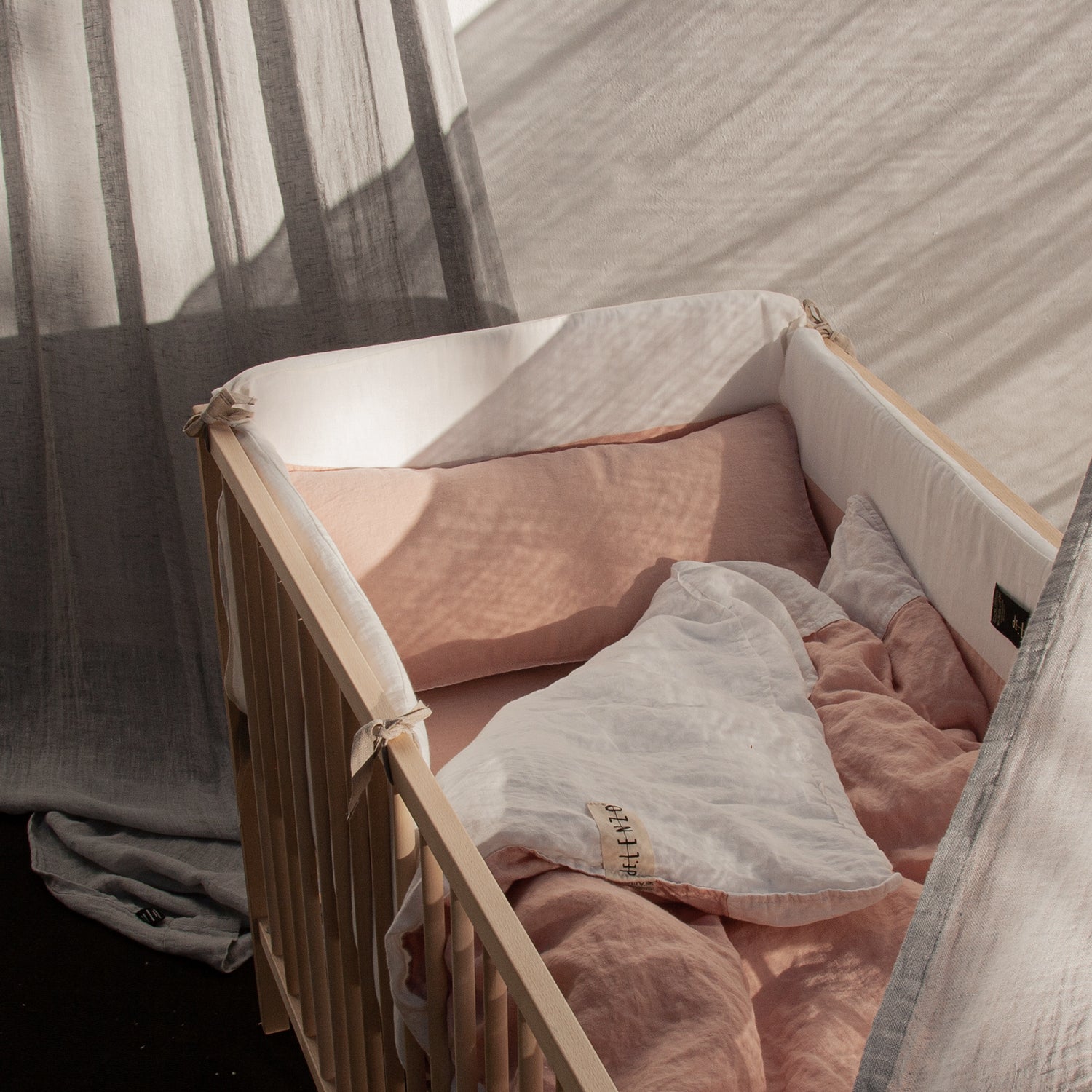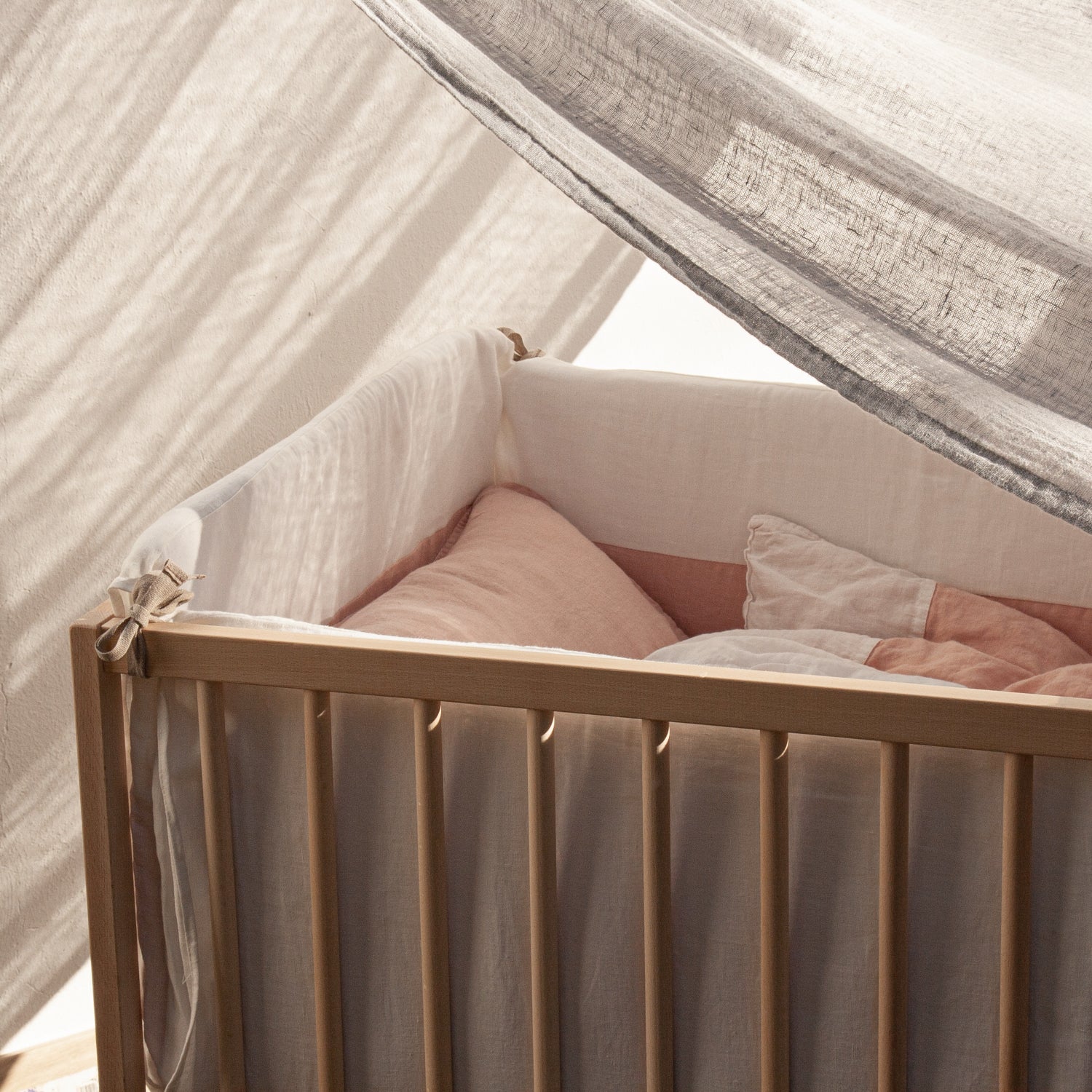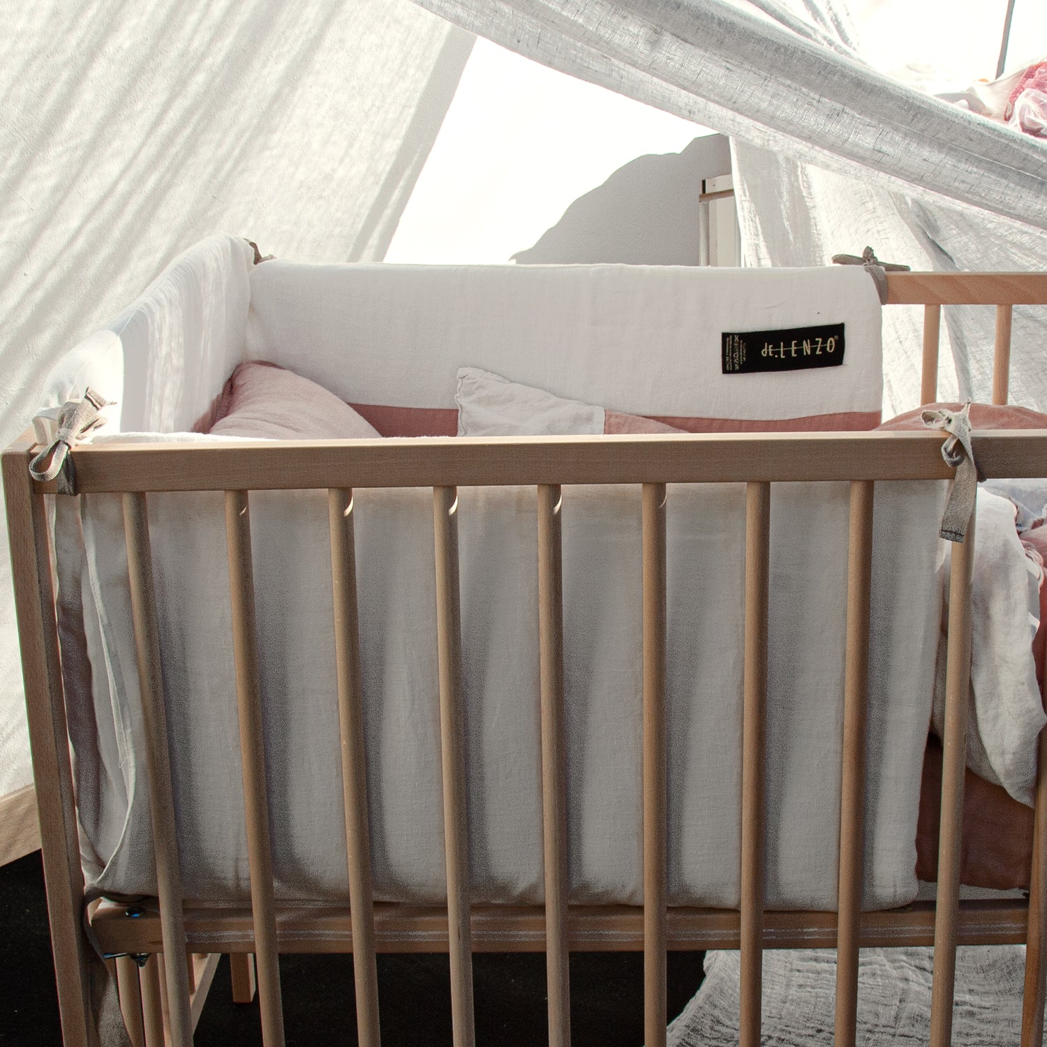 La chichonera o protector de cuna Mafalda es ideal para que el bebé no meta sus manos o pies entre los barrotes y se pueda hacer daño, además al ser de lino es suave y super acolchado. Un detalle importante es que el protector es desenfundable. Es apto para lavadora, secadora y no necesita plancha.