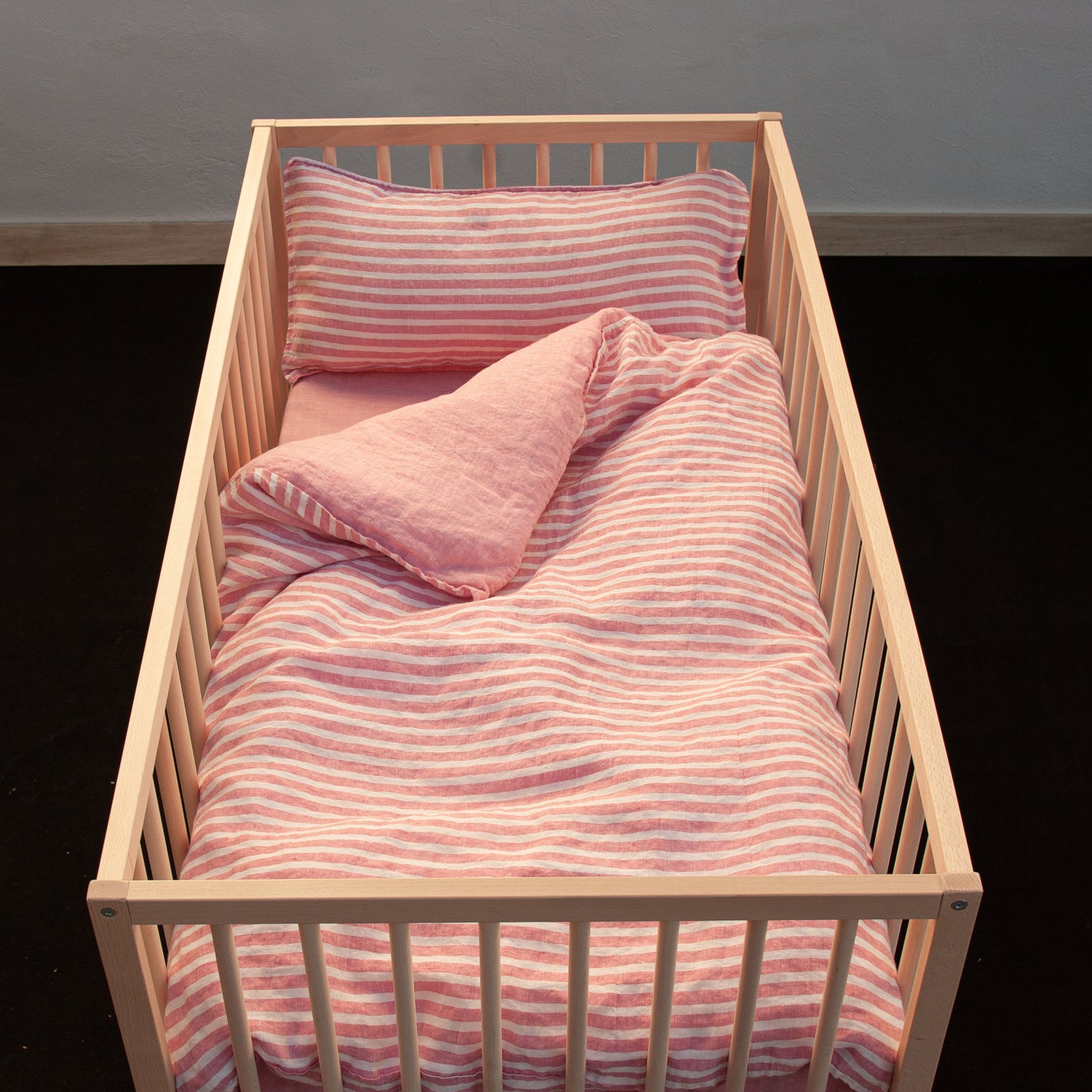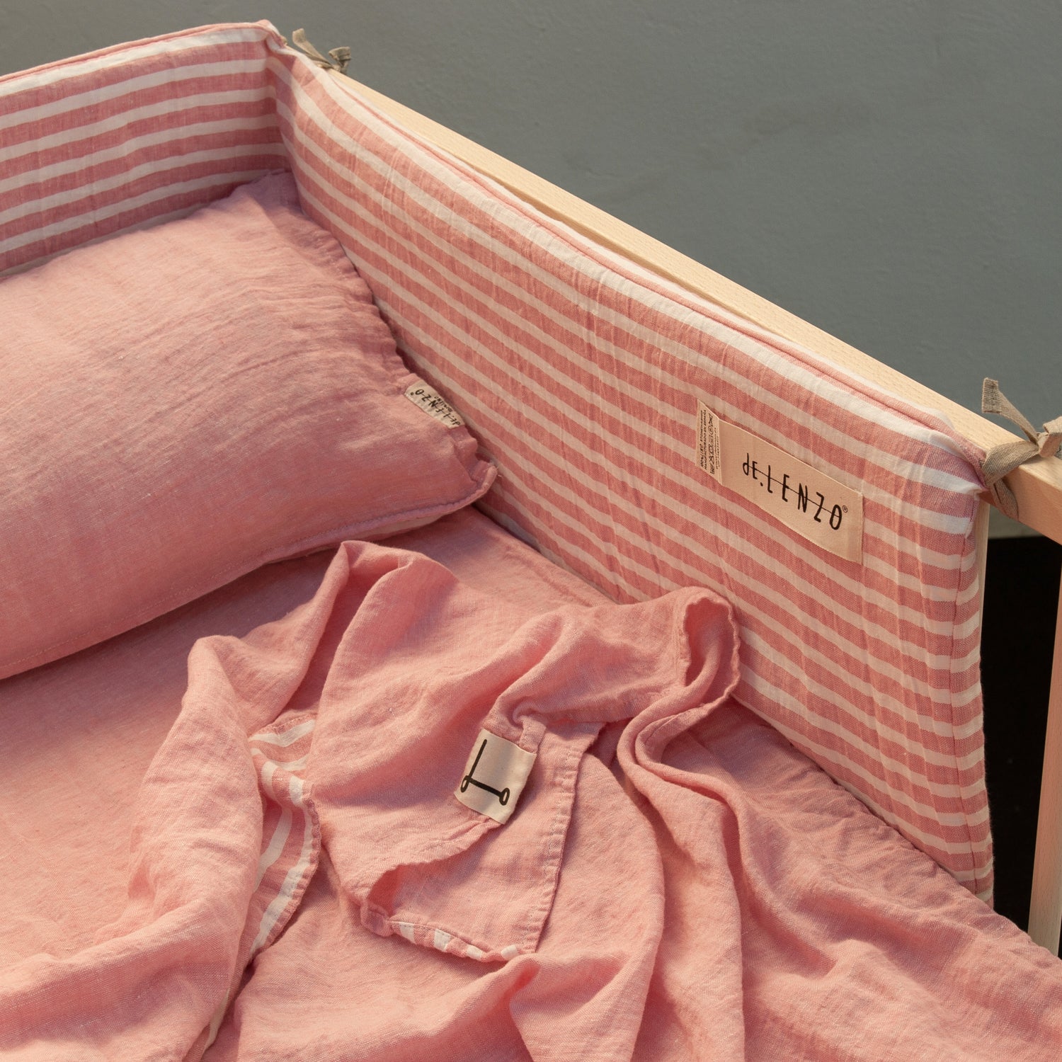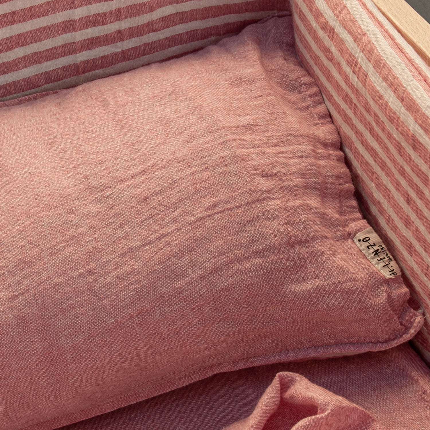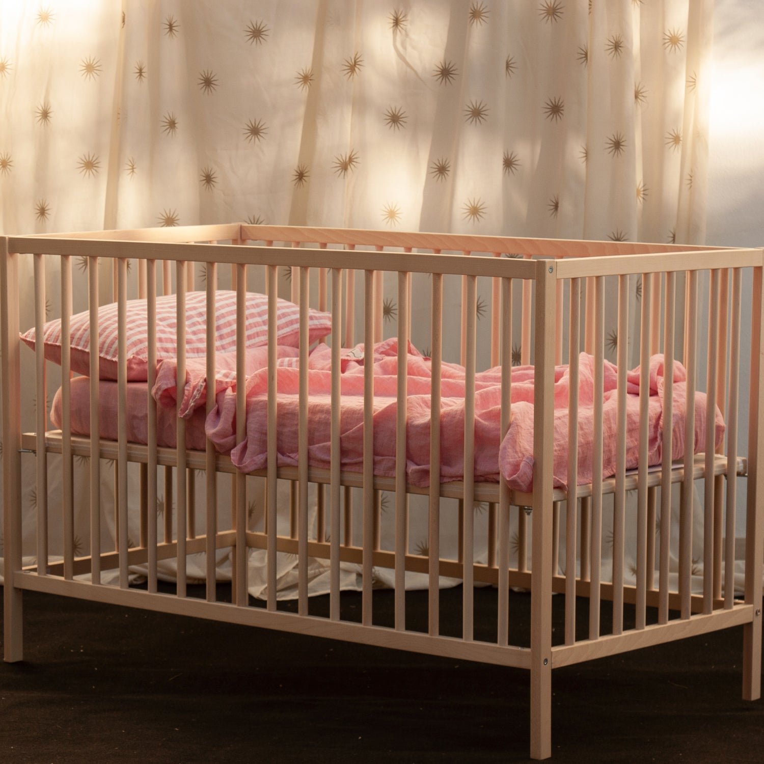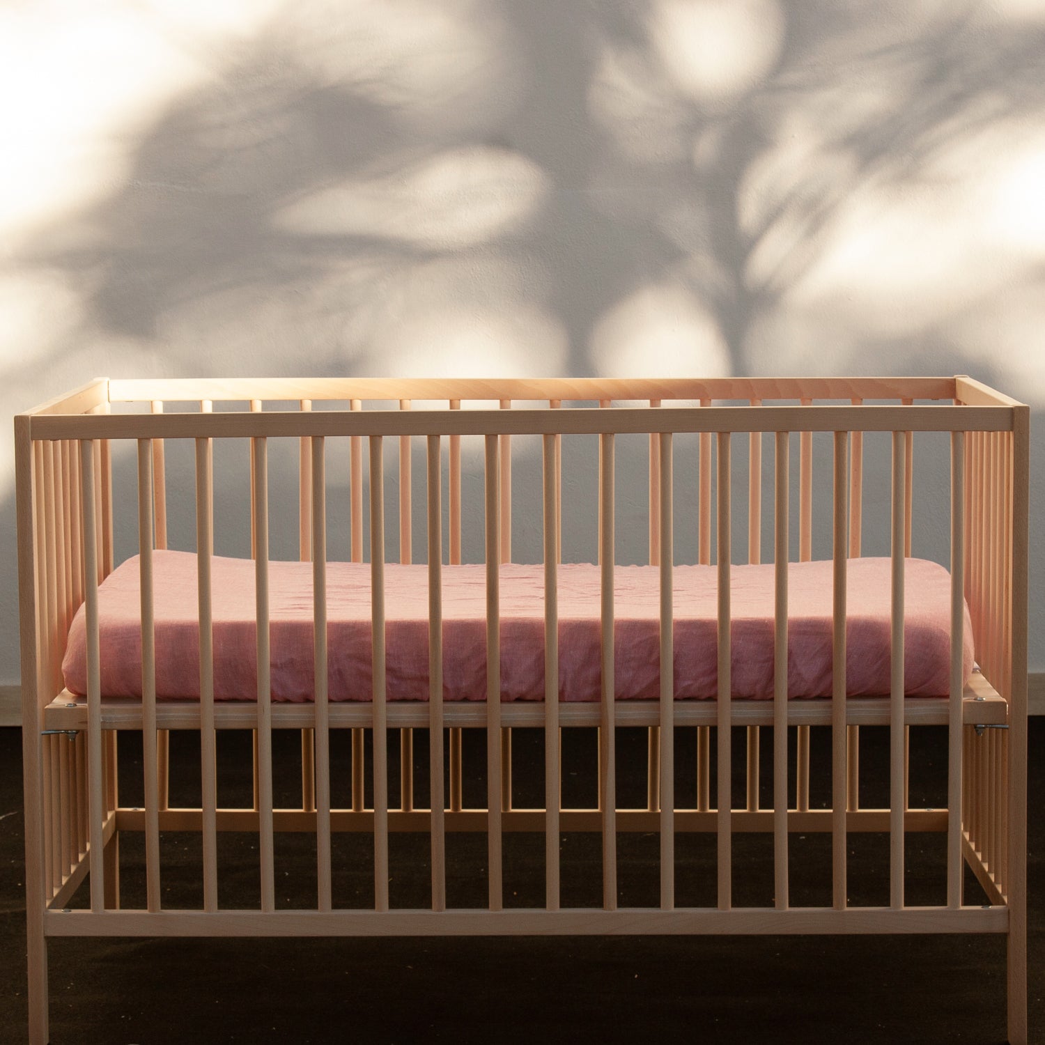 El color del modelo Gretel endulzará los momentos de descanso de tu bebé. El lino es muy suave, un lino de gramaje fino, de un color rosa chicle que enamora. Además es apta para lavadora a 40°C, secadora y no necesita planchado.