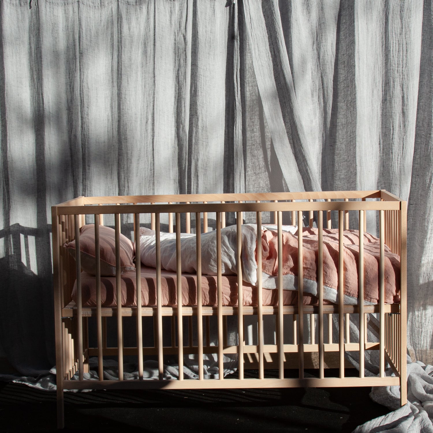 Ropa infantil para cuna hecha con 100% lino lavado de origen europeo, cuenta con el sello STANDARD 100 by OEKO-TEX® garantía de un proceso de fabricación certificado y controlado, respetuoso con tu piel.