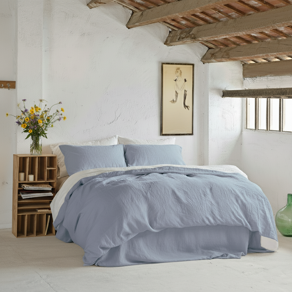Discover the versatility of luxury in our SKY BLUE & WHITE reversible linen set. Weighing 170gr/m2, this premium fabric offers the perfect structure for demanding projects. Change colors to suit your needs: vibrant sky blue on one side, pure white on the other. Ideal for decoration, fashion or upholstery, its 100% linen composition guarantees breathability and durability. One product, two infinite possibilities. Invest in quality that adapts to your creativity.