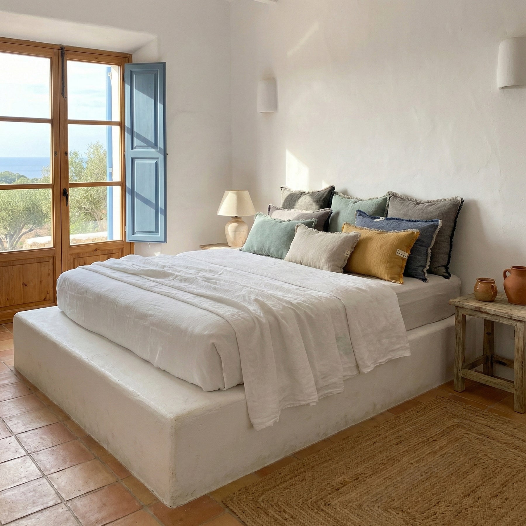 100% lin lavé. Lavable en machine et au sèche-linge.