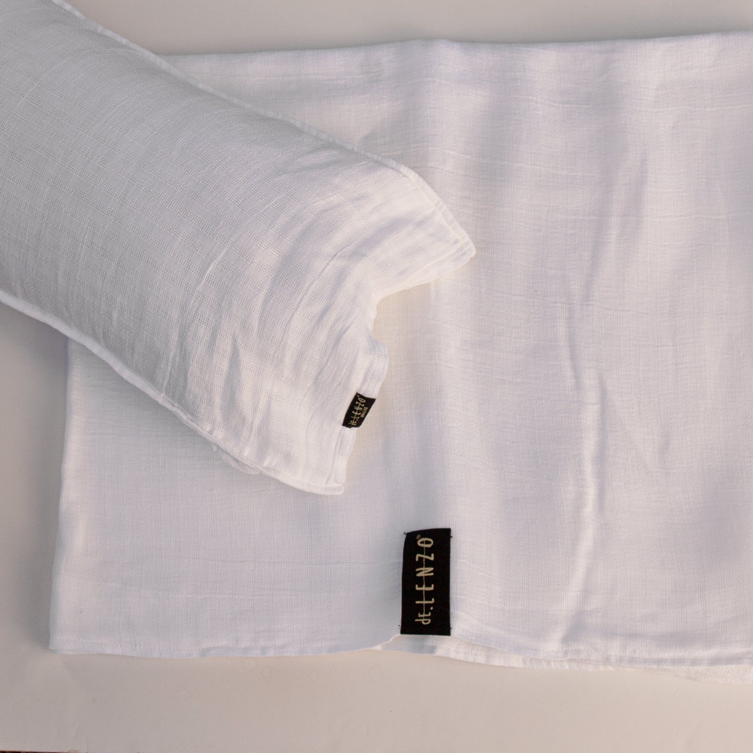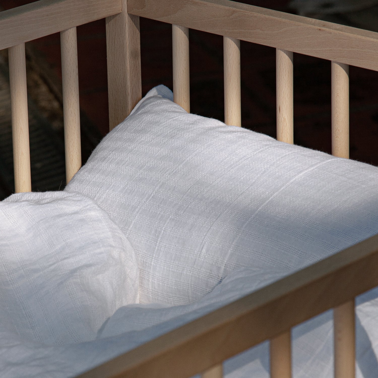Aurora tiene ese estilo de antaño que nos encanta, es un lino blanco suave y muy esponjoso. La funda nórdica lleva el relleno de fibra hueca incluido y además una funda de almohada a juego.