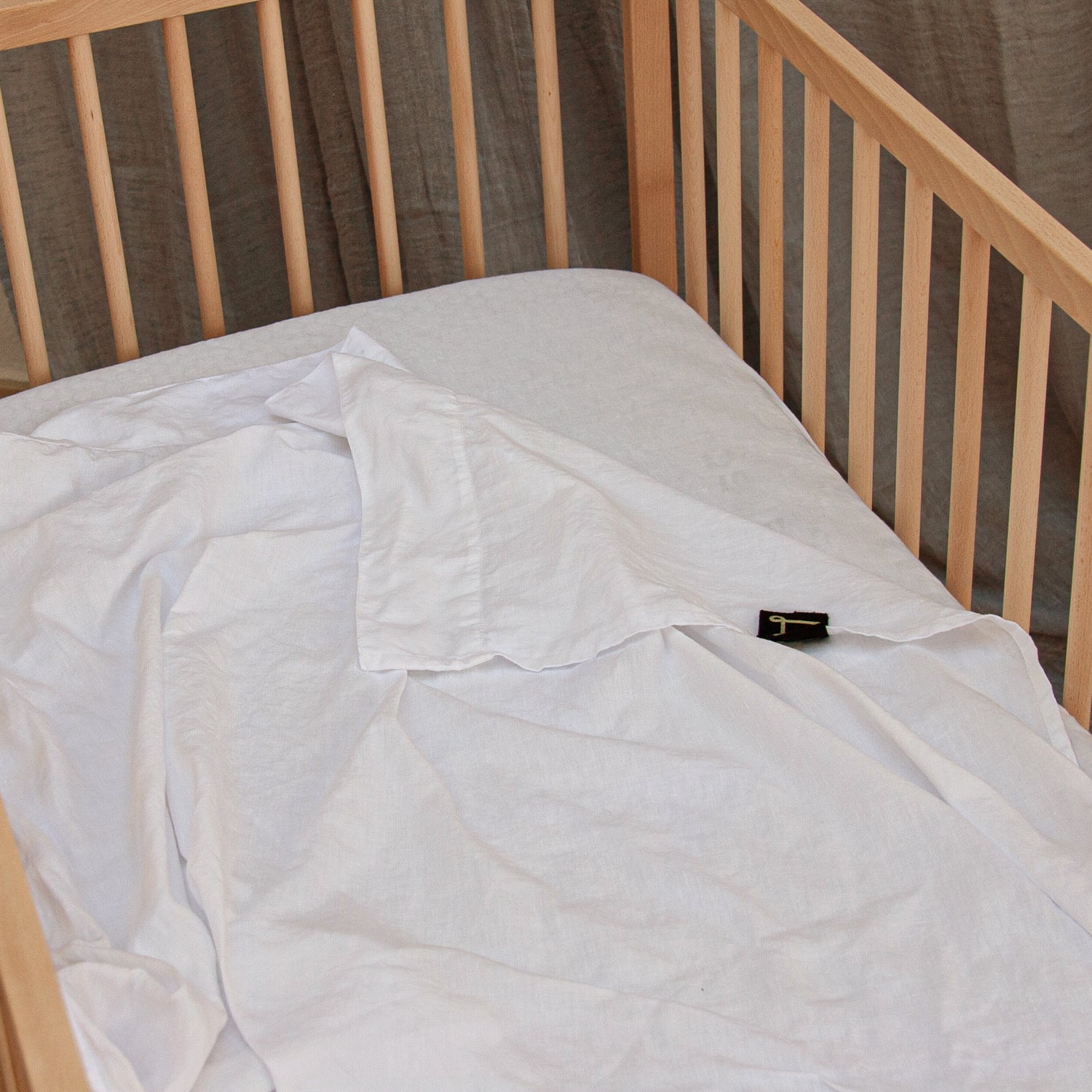 Ropa infantil para cuna hecha con 100% lino lavado de origen europeo, cuenta con el sello STANDARD 100 by OEKO-TEX® garantía de un proceso de fabricación certificado y controlado, respetuoso con tu piel.