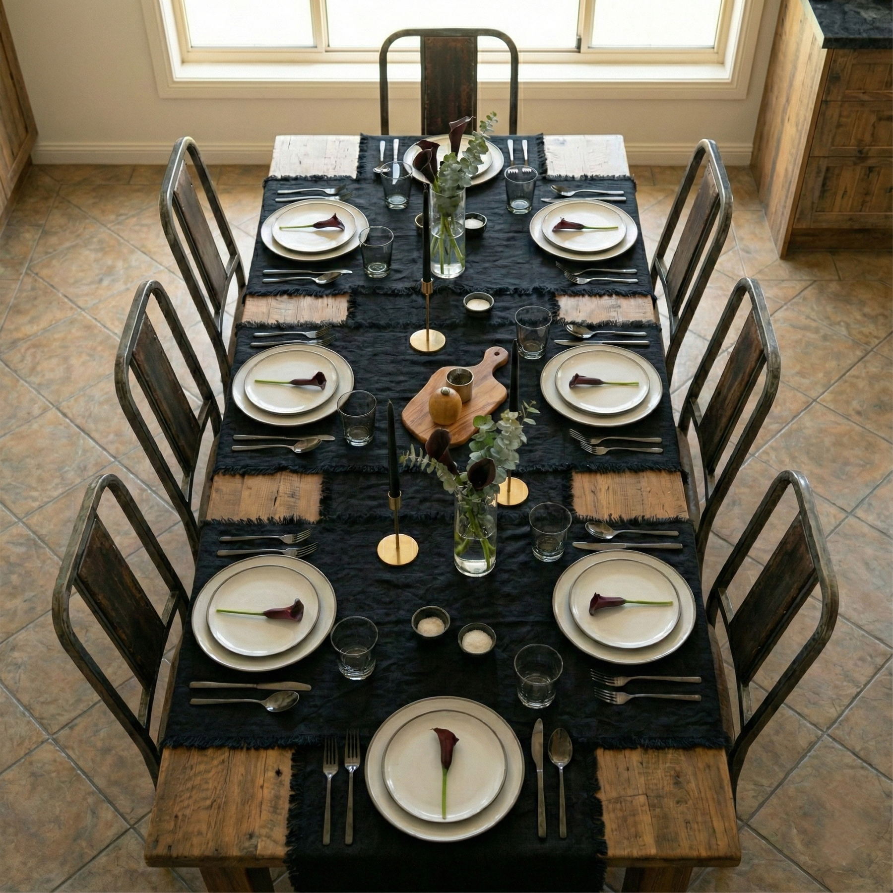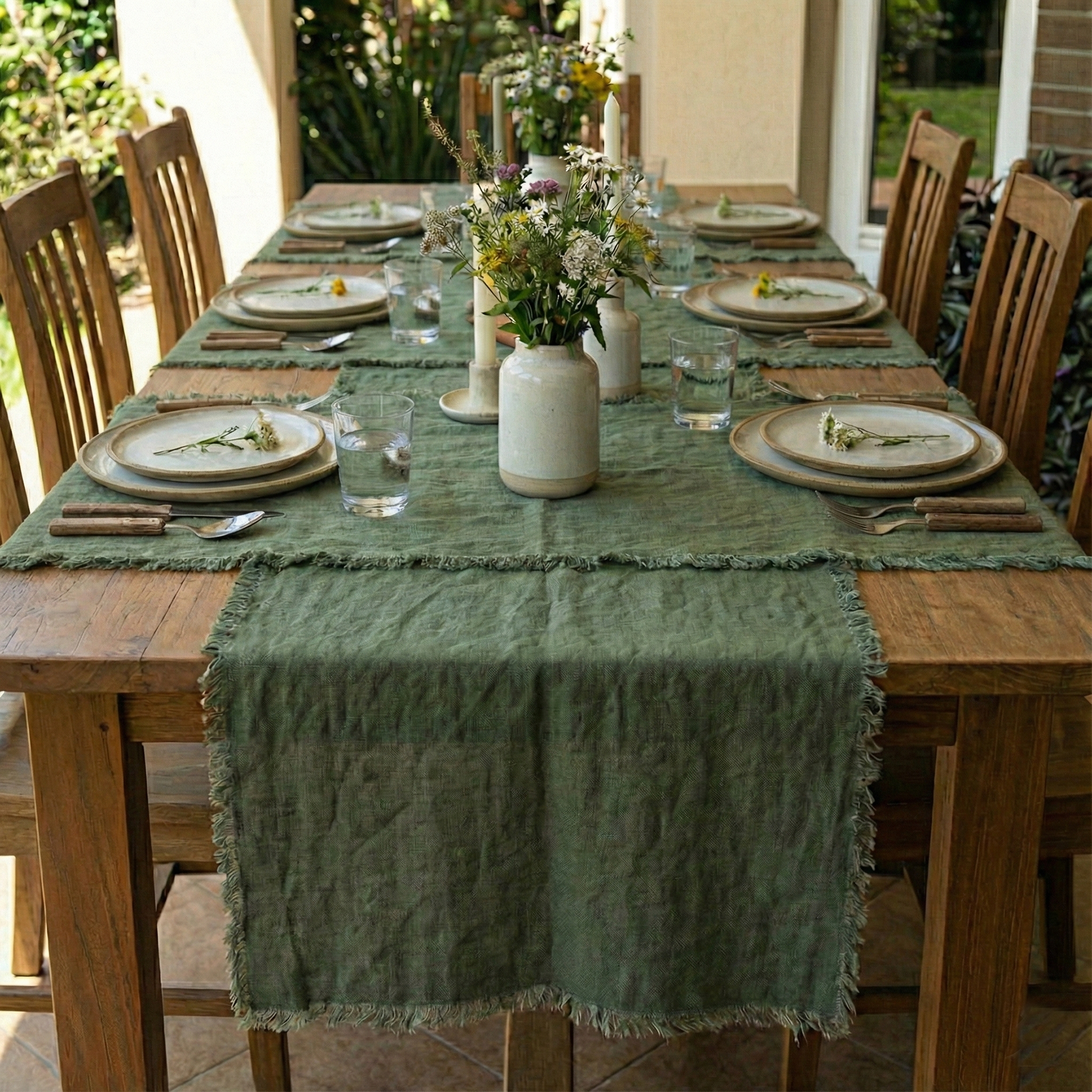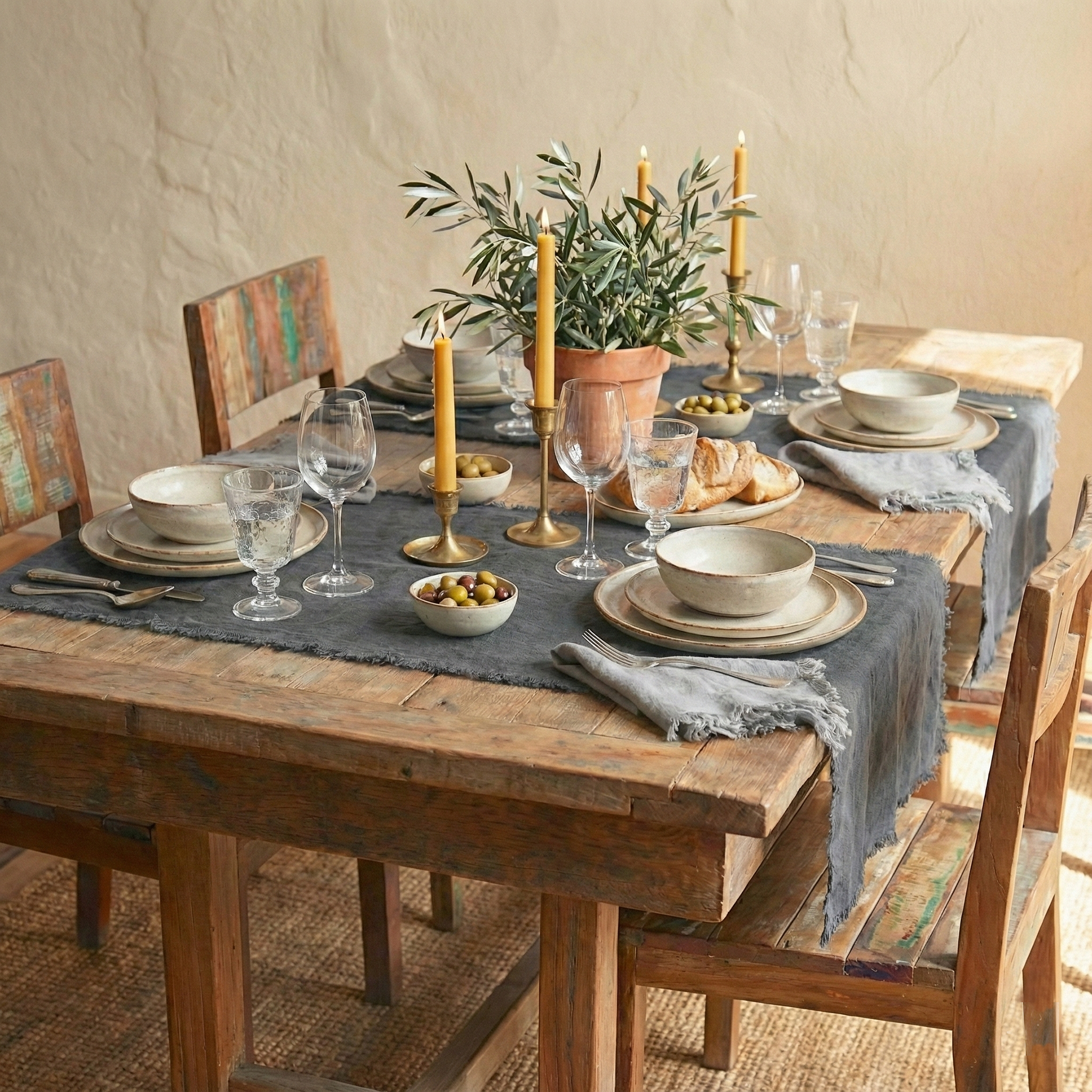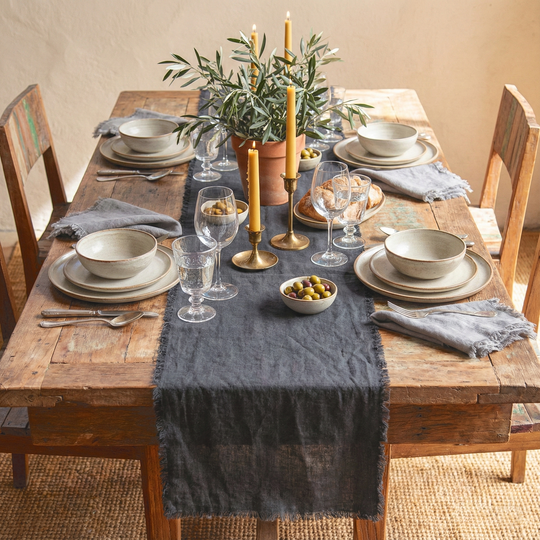 Camino de mesa de 100% lino lavado modelo Marrakech, disponible en varias medidas y varios colores. También los hacemos a medida para ti. Combinan concualquier decoración, desde las mas rústicas y campestres hasta las mas clásicas dando es contraste perfecto.
