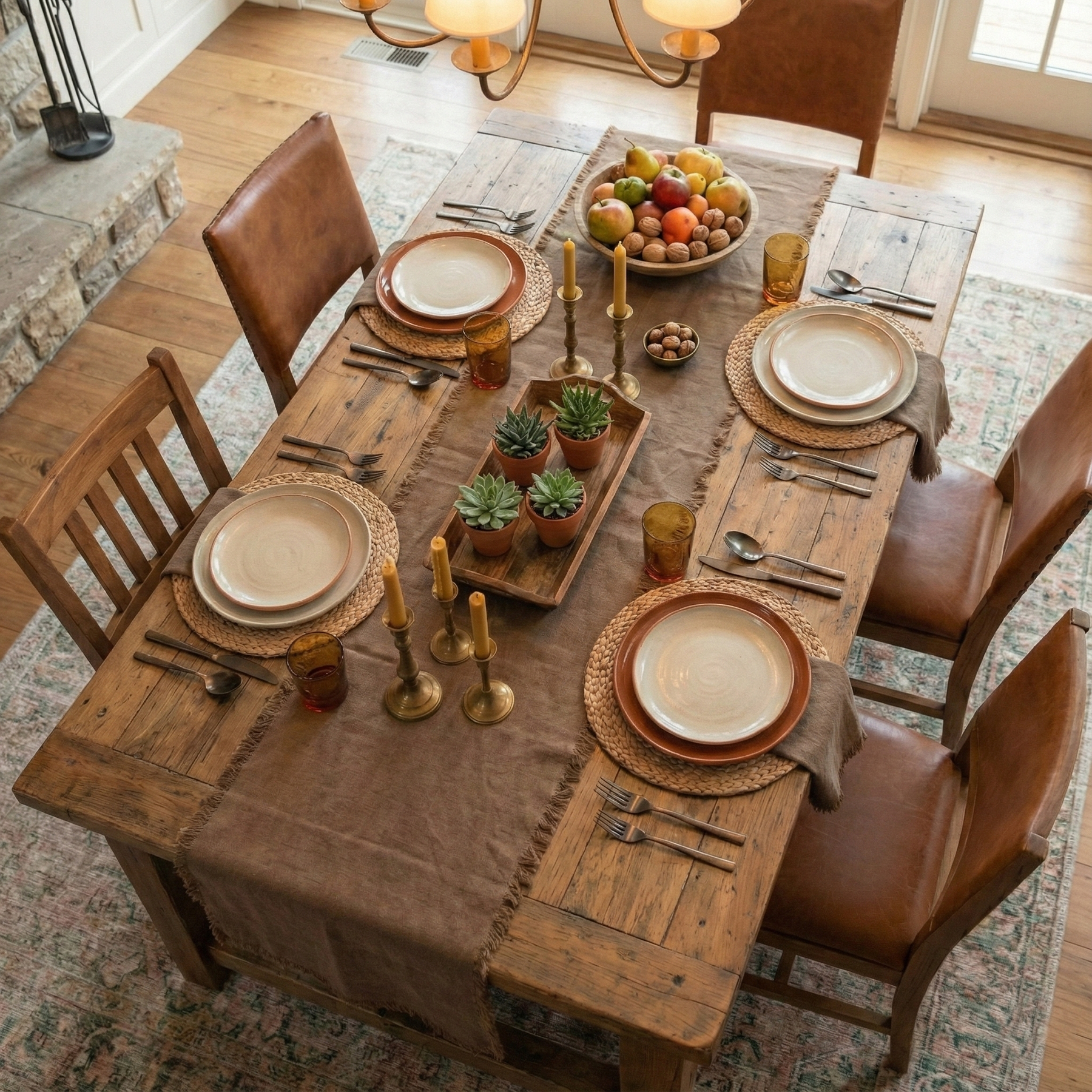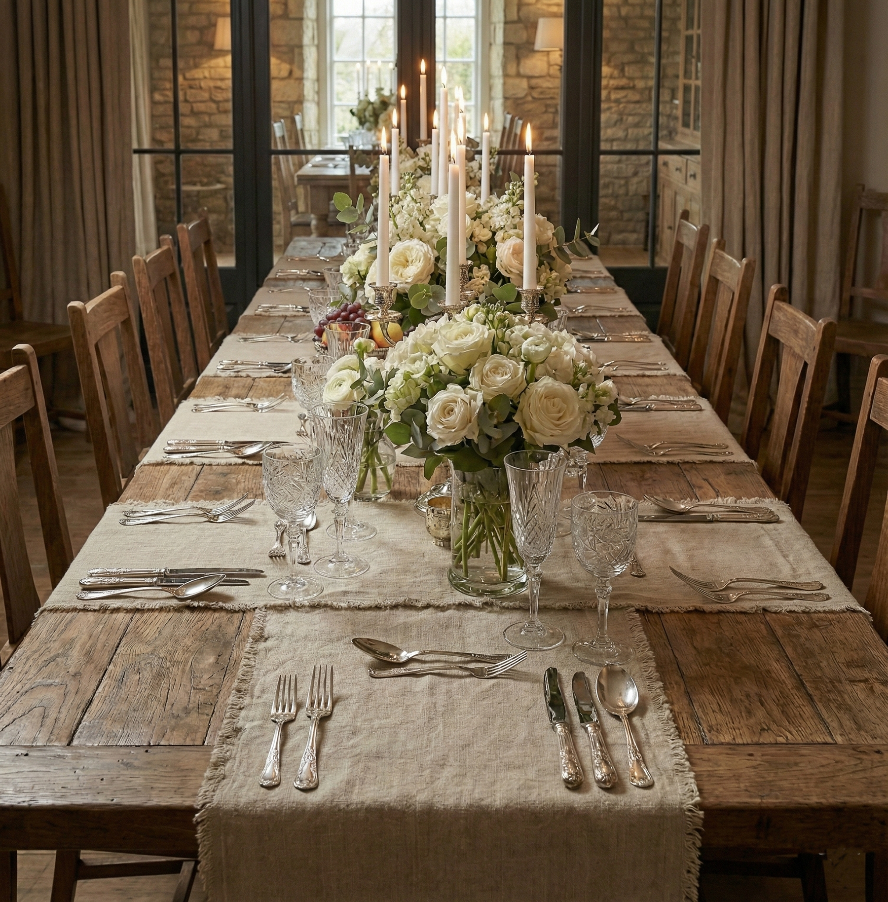 El camino de mesa ideal es el que cuelga 30cm a cada lado de tu mesa.