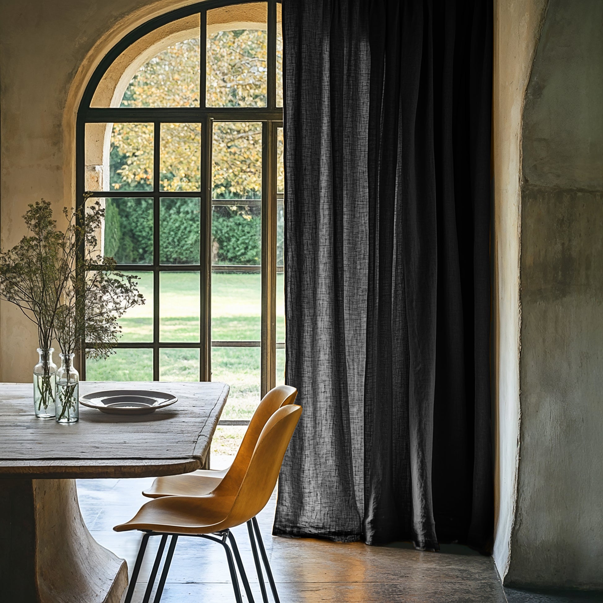 Nuestras cortinas de lino clásico son las más "serias" de todas. Tienen más cuerpo ( ni ves, ni te ven) y visten de una forma elegante. Disponible en todos los colores de ropa de cama ver colores. Las cortinas de las fotografías son: Mostaza, azul, mint, teja, piedra, hoja, blanco y gris.