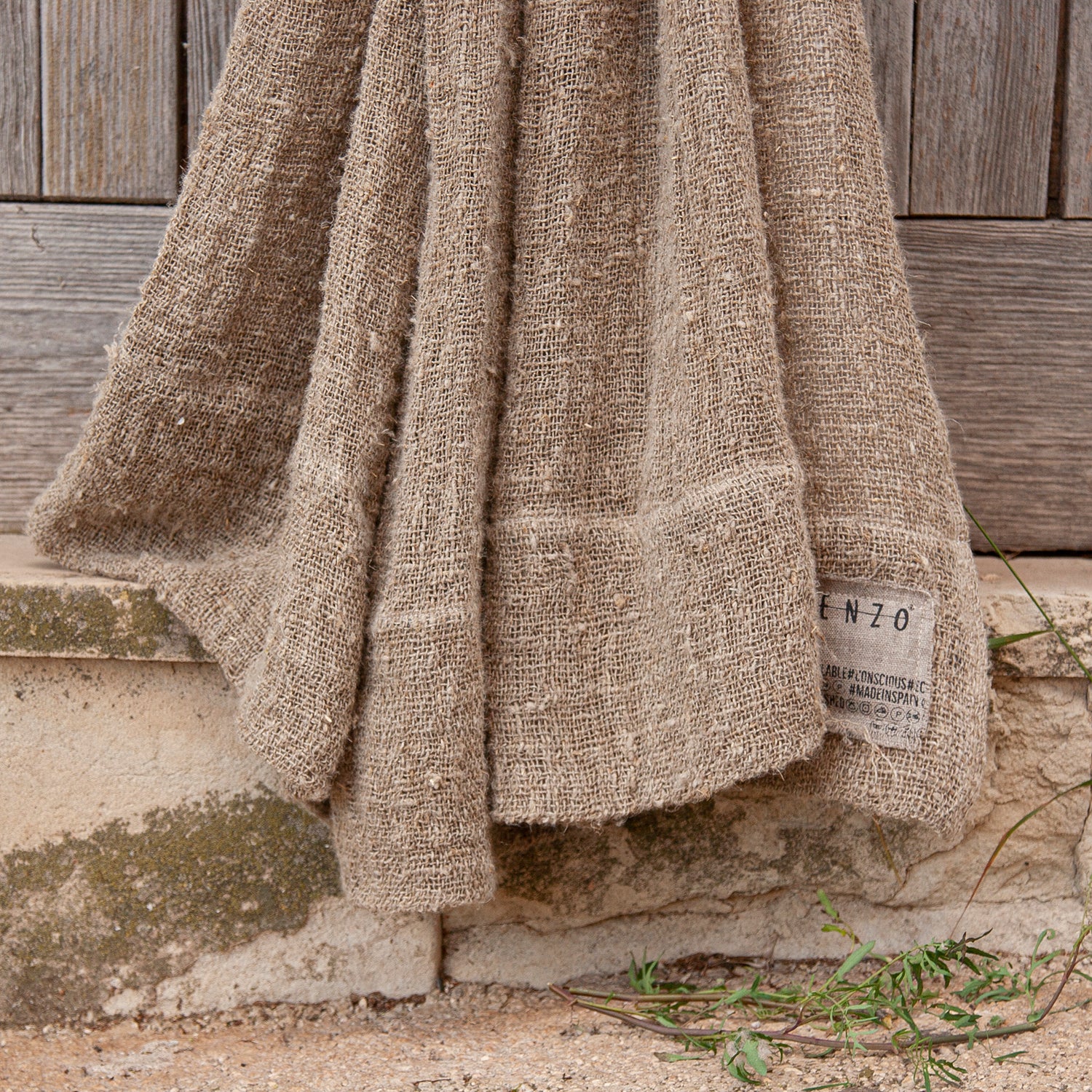 Algunos de nuestros cojines, están cosidos con lino rústico de hasta 350gr/m2, y nuestras toallas con rizo de lino y base de algodón, exfolian tu piel de la forma más natural posible.