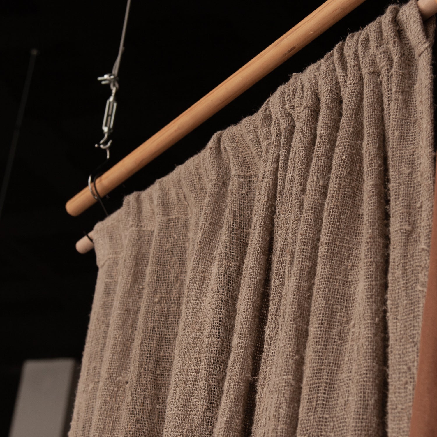 Nuestras cortina Formentera es la más gruesa de todas pero tiene la transparencia de una cortina fina debido a la forma como está tejido este lino. Son impresionantes. Parecen una red de pescador...Las recomendamos para casas rústicas o por el contrario casas de muchísimo diseño.