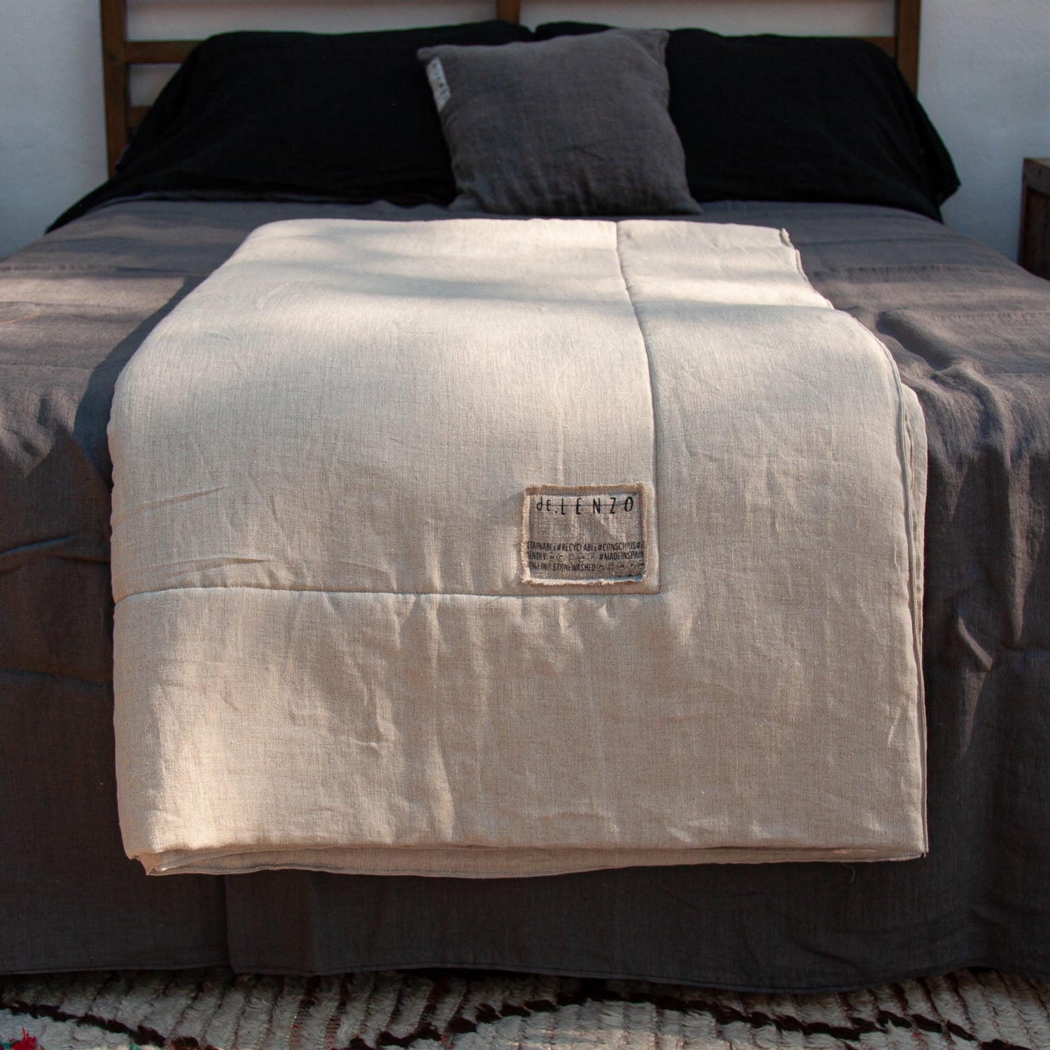 Para utilizarlo como relleno para el interior de tu funda nórdica o a modo de manta para las colchas de lino. Con exterior de 100% lino lavado y ribeteado con cinta de lino en el modelo para plaid, podrás ajustarlo.