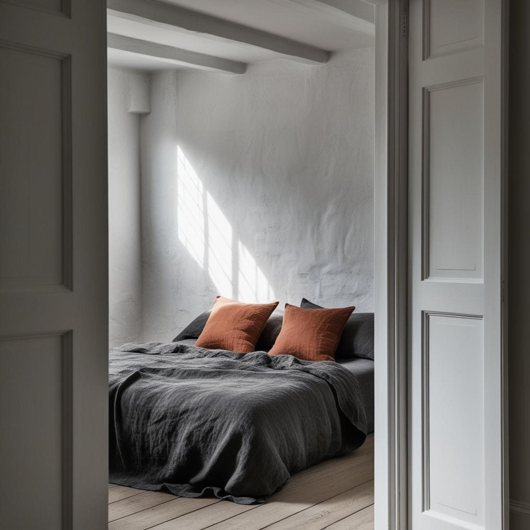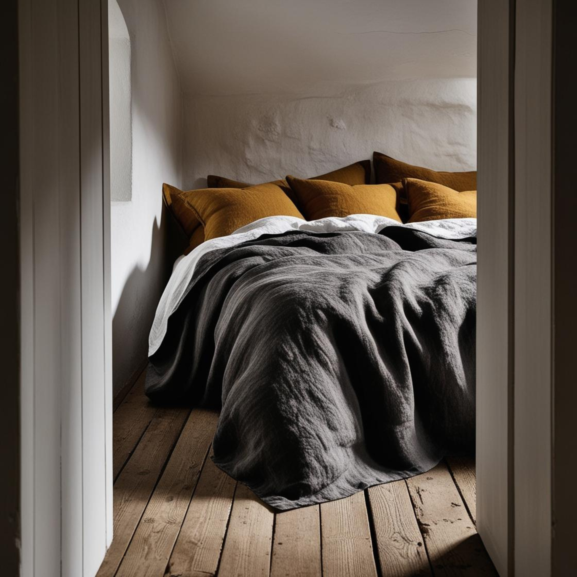 Ves haciendo tu juego de cama poco a poco, combiando colores del mismo lino.