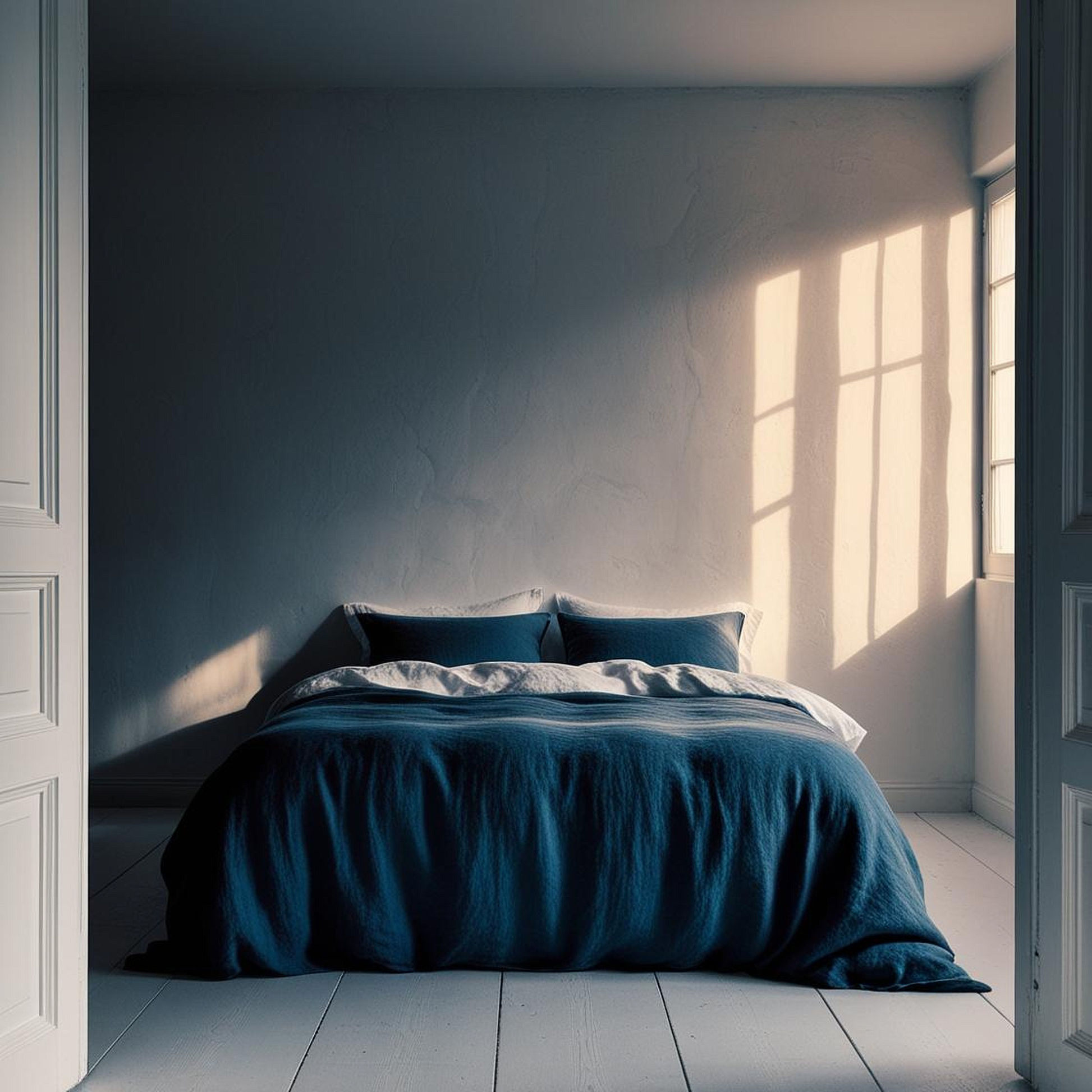 Juego de funda nórdica, fundas de almohada y sábana bajera ajustable de lino lavado ¡Un color azul oscuro único! Solo disponible 1 unidad con bajera ( según tamaño de cama elegido) + funda nórdica máximo 240x220cm + almohadas según tamaño de cama.