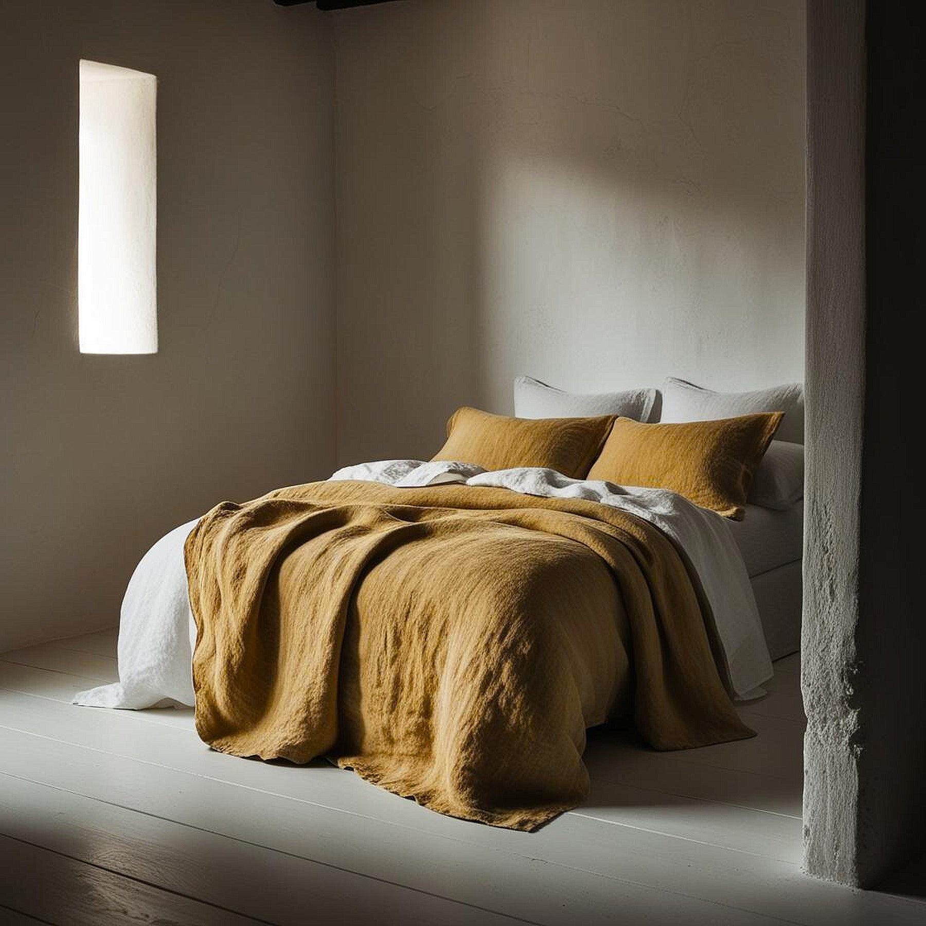 Juego completo lino reversible MOSTAZA&BLANCO-170gr/m2