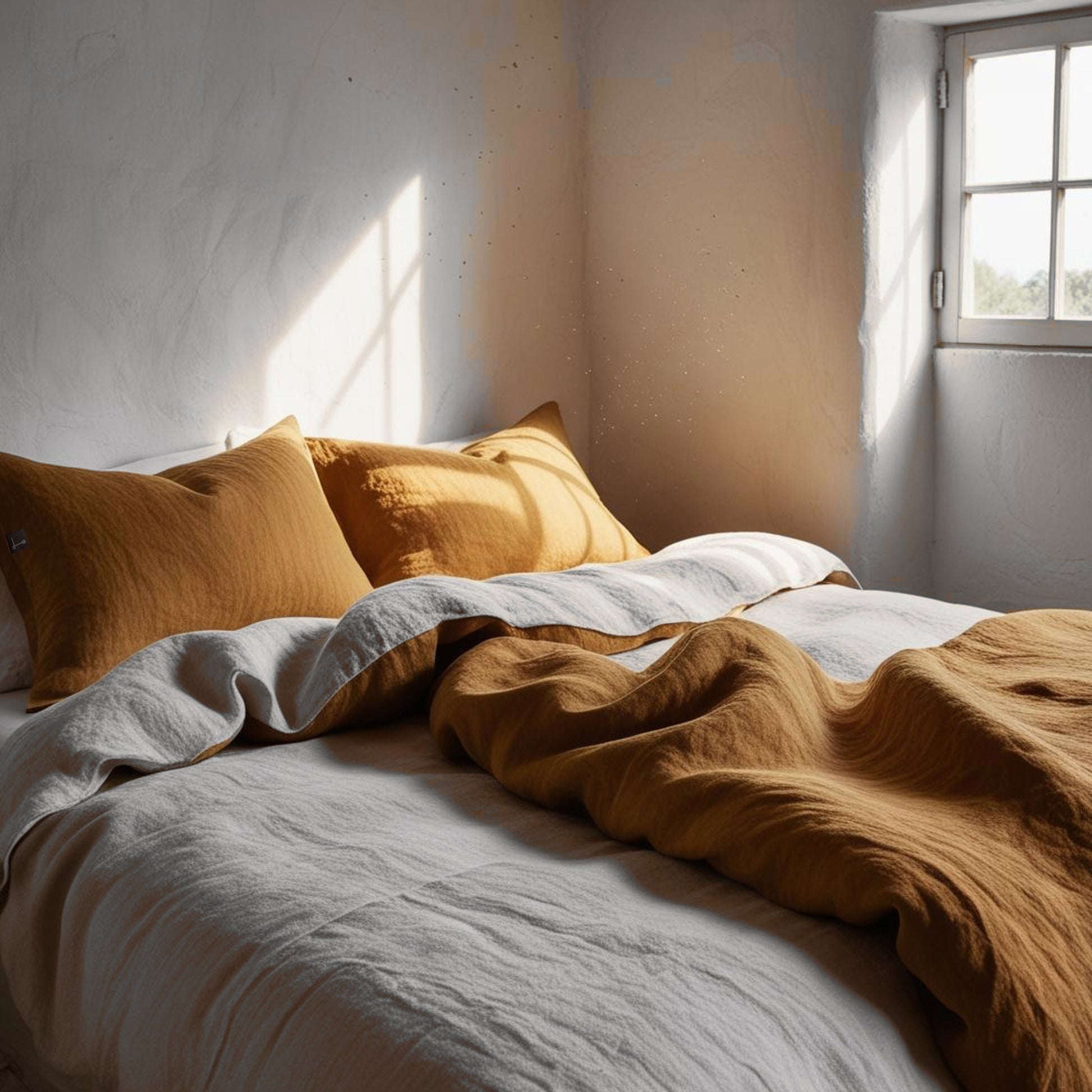 Funda nórdica, bajera y almohadas de lino