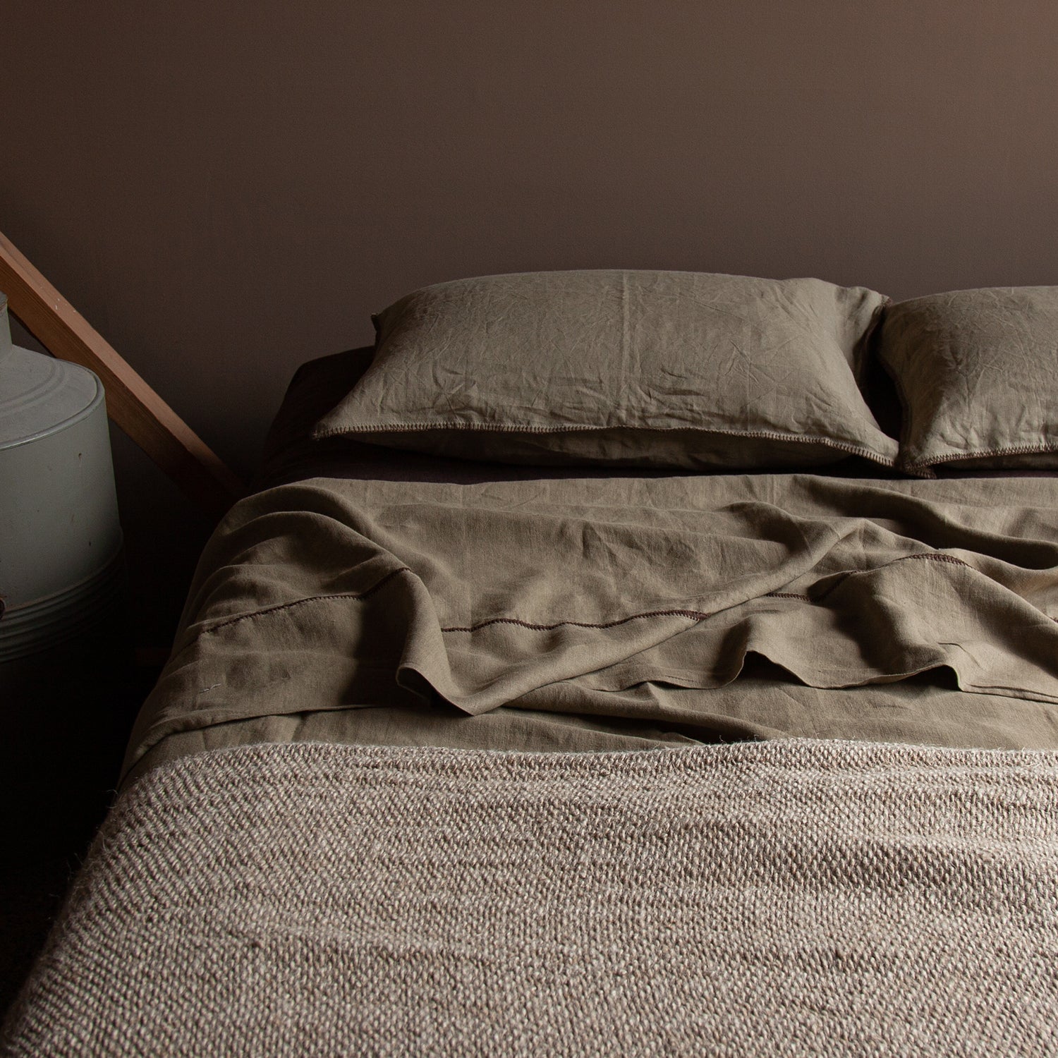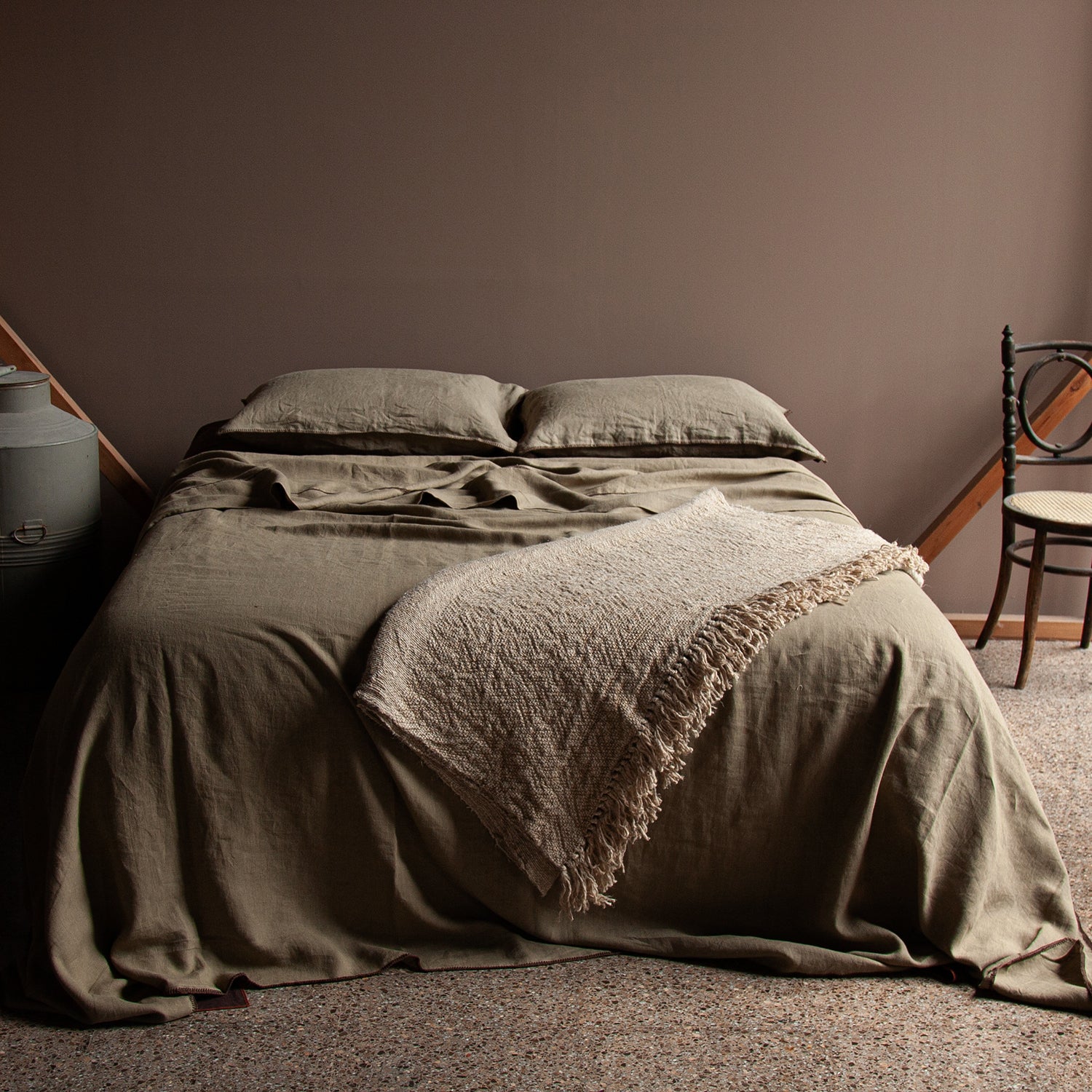 100% Lino lavado Europeo de 200gr/m2 y 170gr/m2 confeccionado en España.