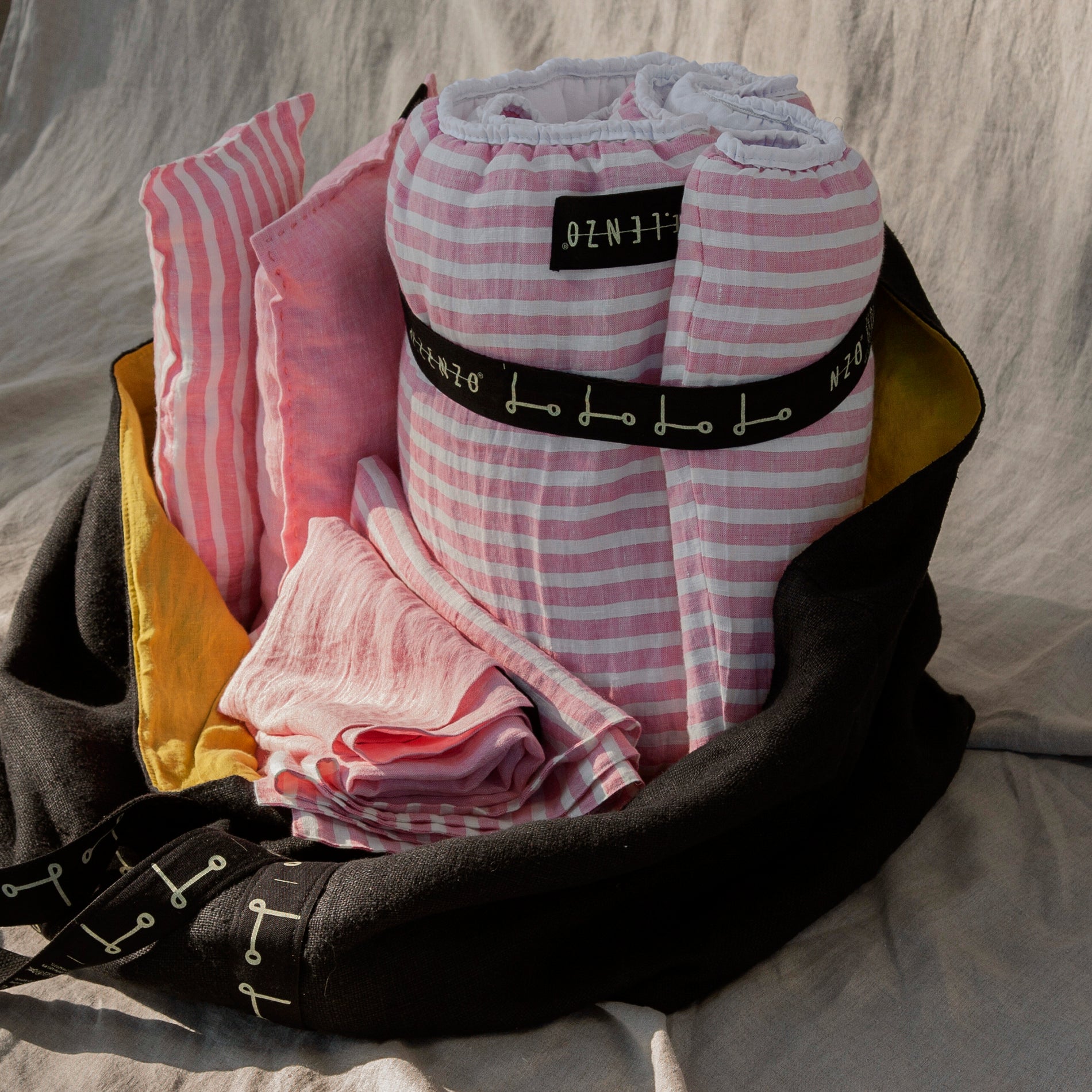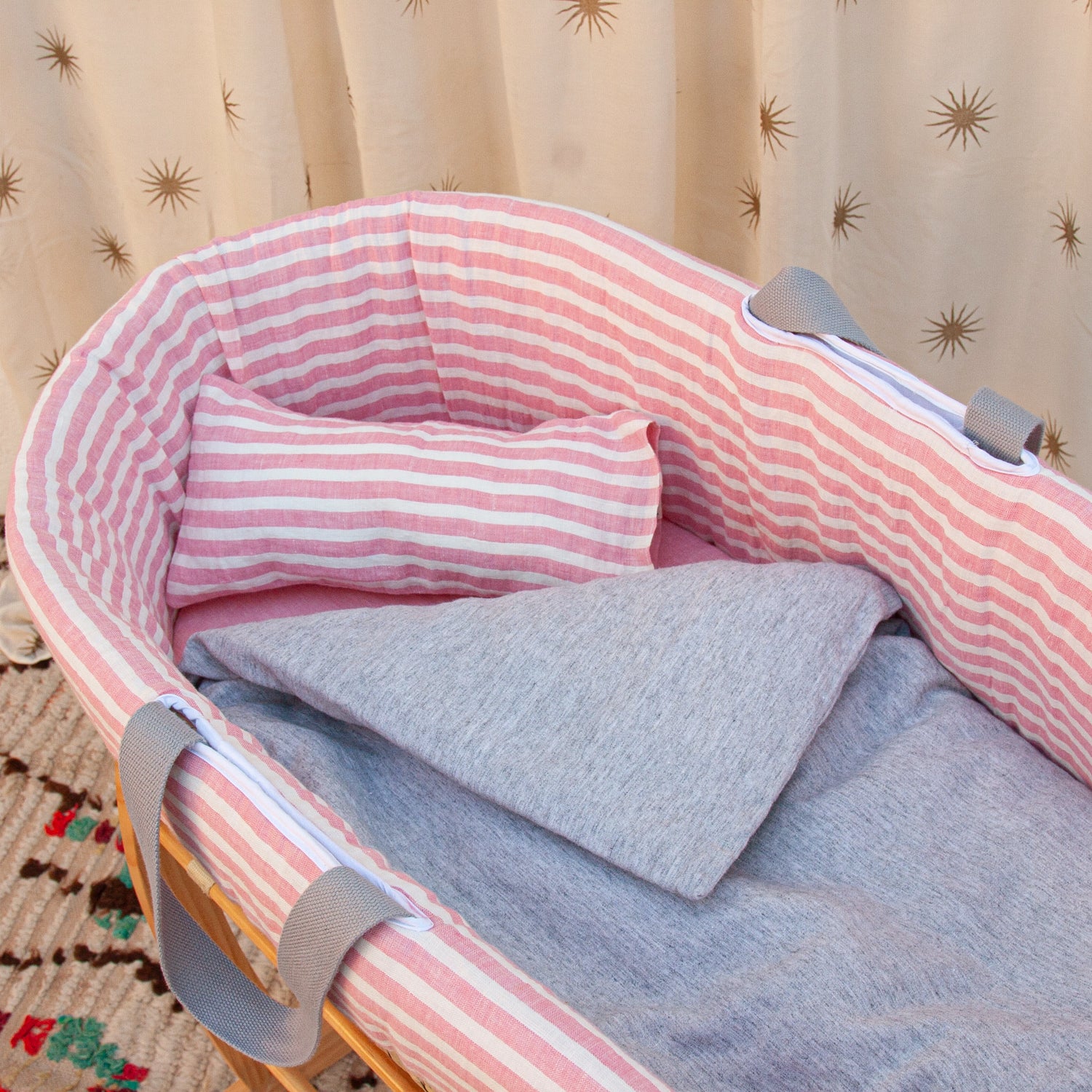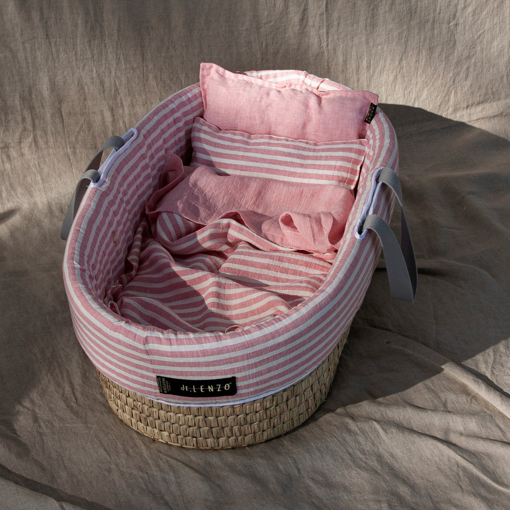 Este capazo es increíblemente alegre. Con su rosa chicle inspira felicidad donde lo pongas. Un lino suave con cuerpo y un gramaje ideal para bebé. Elige entre moisés completo o únicamente las vestiduras para el moisés, aptas para secadora y no necesitan planchado. La ropa de moisés la podrás utilizar con tu mini cuna por su tamaño.