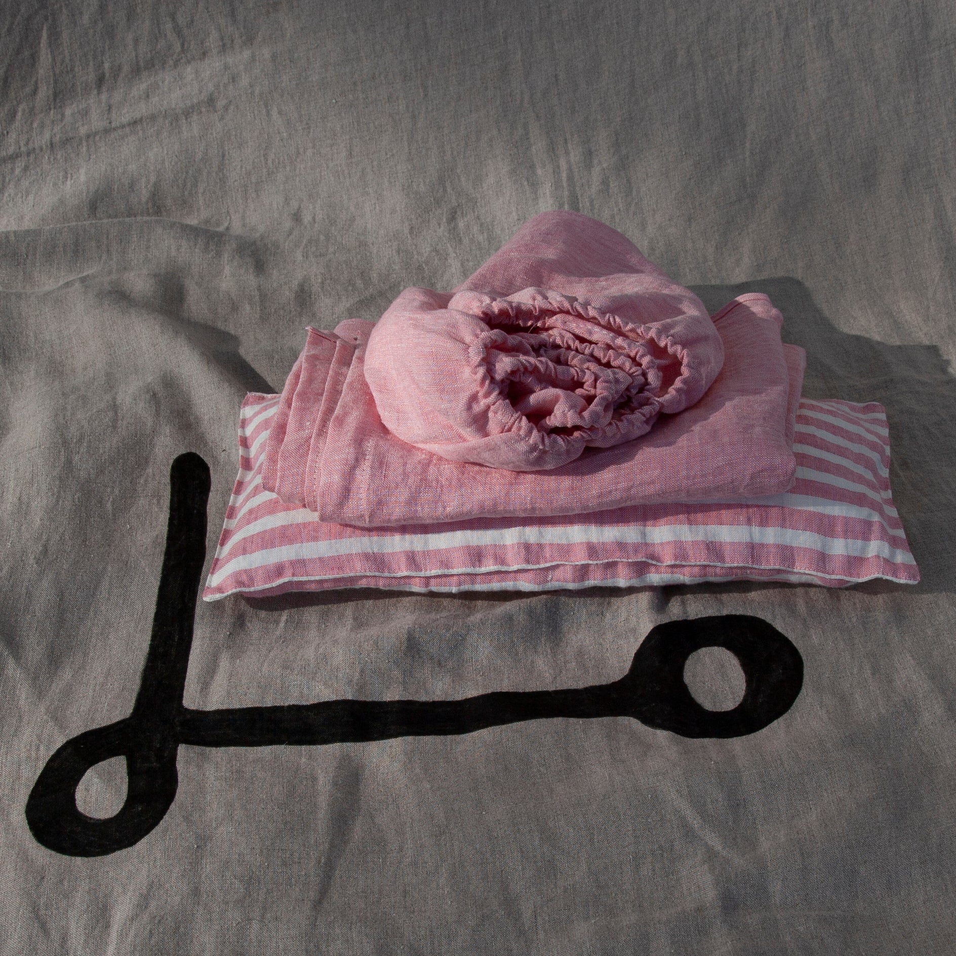 Funda nórdica rayas (55x85cm) y almohada rosa (15x30cm)