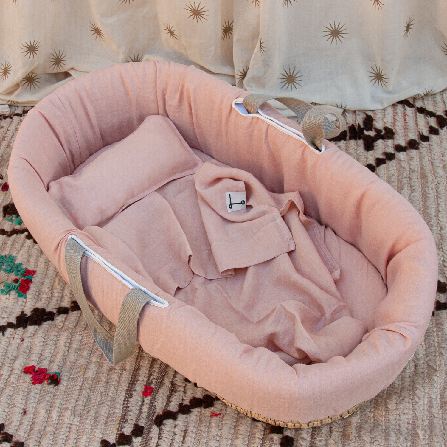 1) Moisés completo (con capazo que incluye asas de algodón crudo):