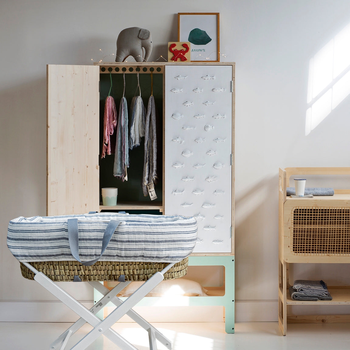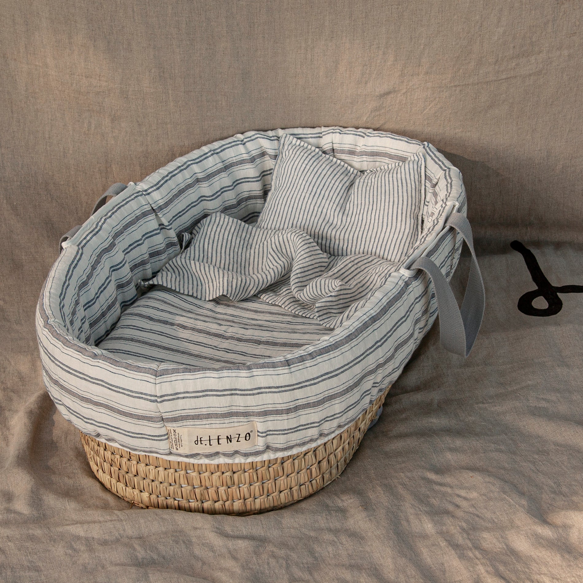 Ropa infantil para moisés hecha con 100% lino lavado de origen europeo, cuenta con el sello STANDARD 100 by OEKO-TEX® garantía de un proceso de fabricación certificado y controlado, respetuoso con tu piel.