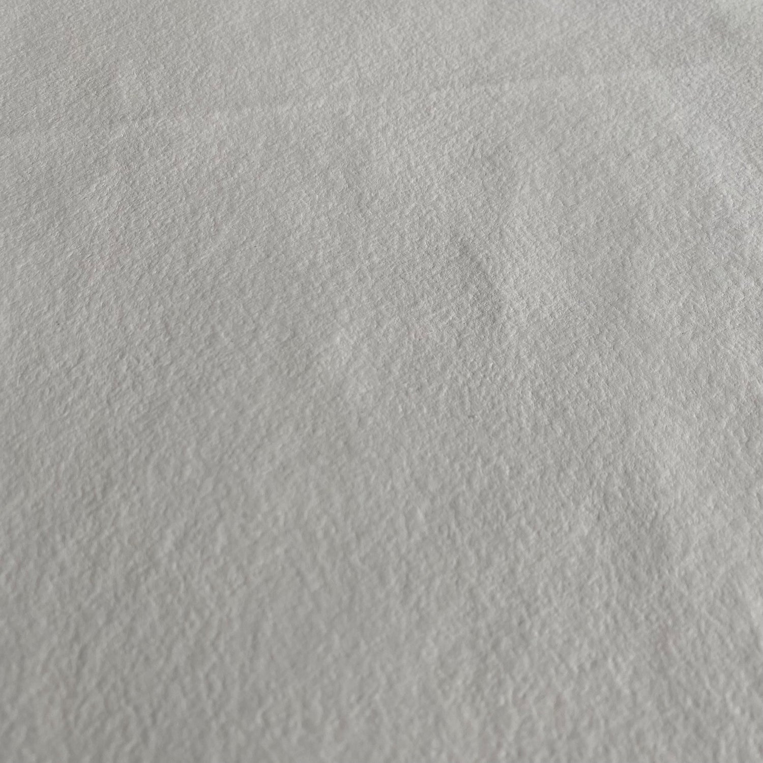 Tela plastificada por una cara y tejido afelpado por la otra, de color blanco. Tejido impermeable y con cuerpo, lo que lo hace ideal para la protección de cunas, cambiadores, mesas..