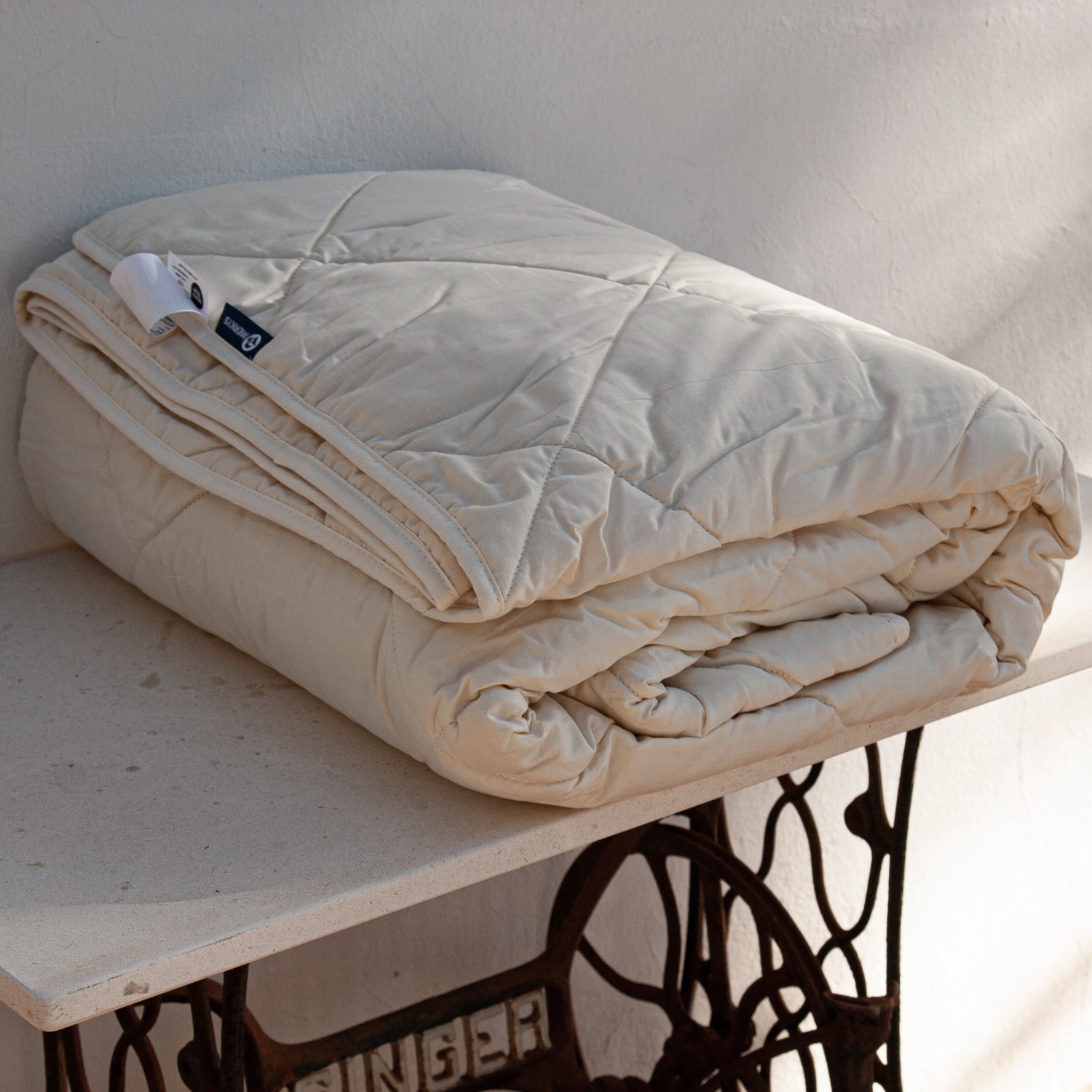 Con un exterior de 100% algodón popelín, con un suave acolchado y 100% lana de oveja británica fabricado en el Norte de Europa, con certificado Standard 100 by Oeko tex. Ideal para temperaturas frías, apto para lavadora y secadora. Con dos gramajes 250gr y 450gr.