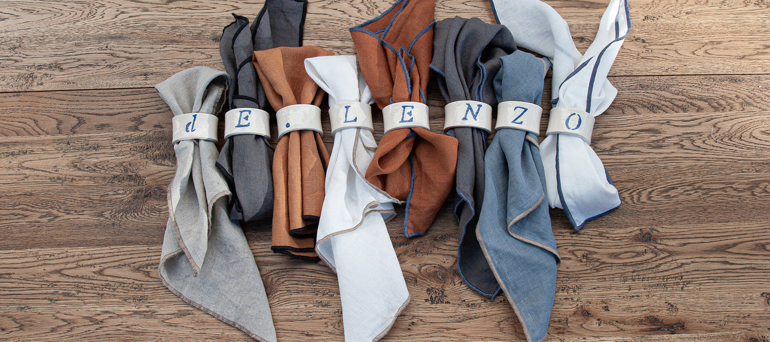 Detalles del producto: Servilletas de 100% lino de tamaño 40x50cm con borde de hilo de color.